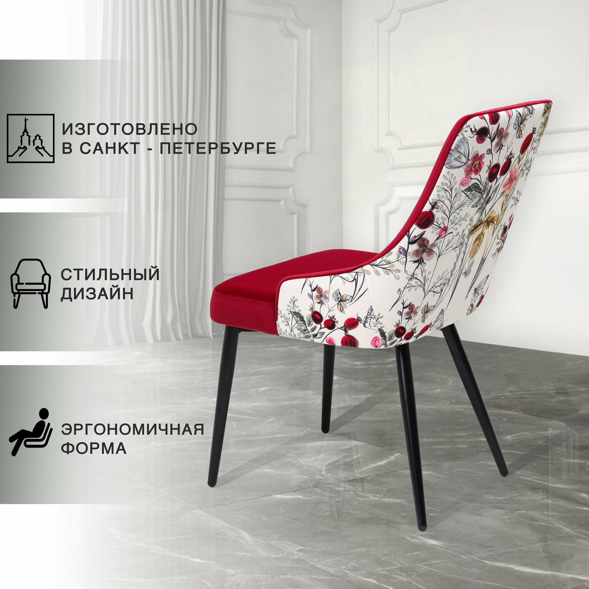Стул с принтом ROOMBELL Exotic из велюра, бордовый, антивандальный 8 891 ₽