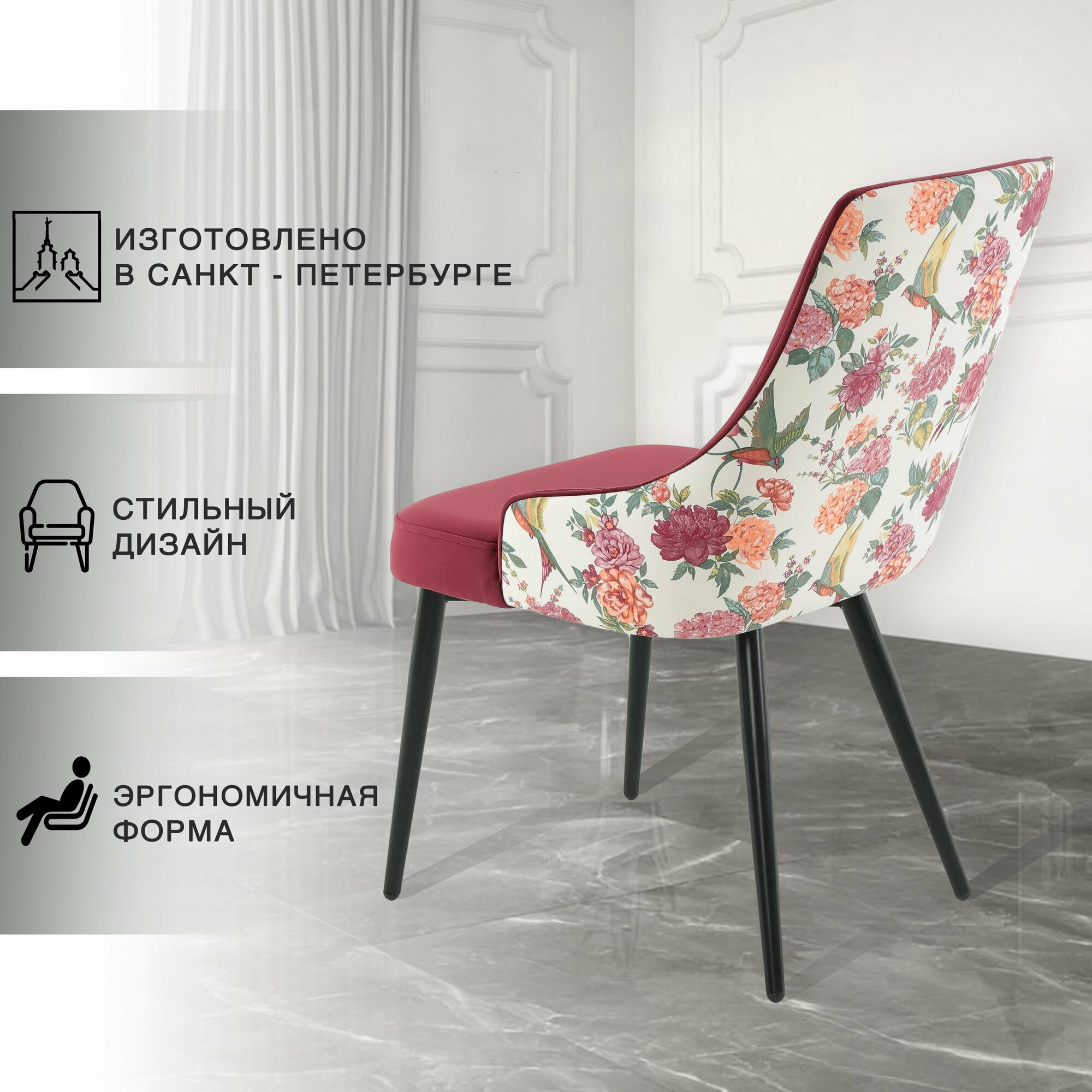 Отзывы на Стул с принтом ROOMBELL Exotic из велюра, бордовый, антивандальный