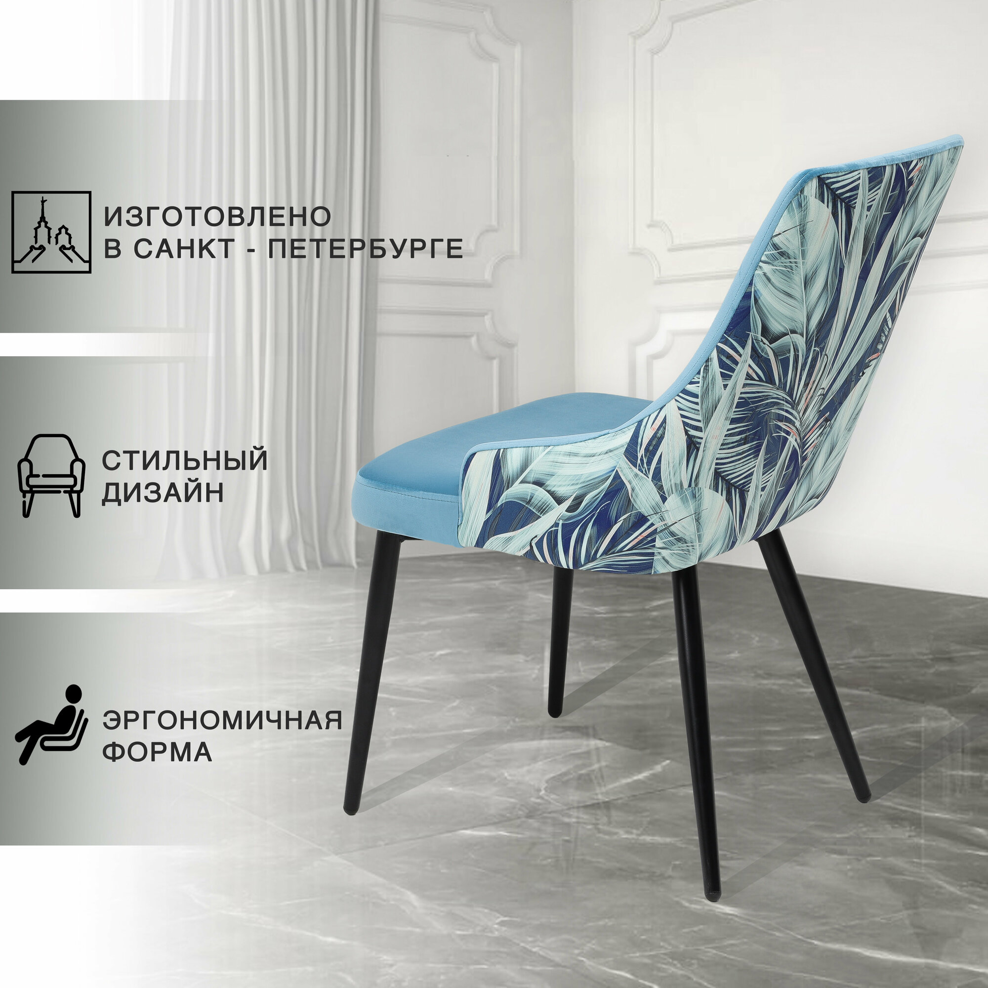 Характиристики этого товара не найдены!Отзывы на Кухонный стул с анатомической спинкой и мягким сиденьем, голубой велюр