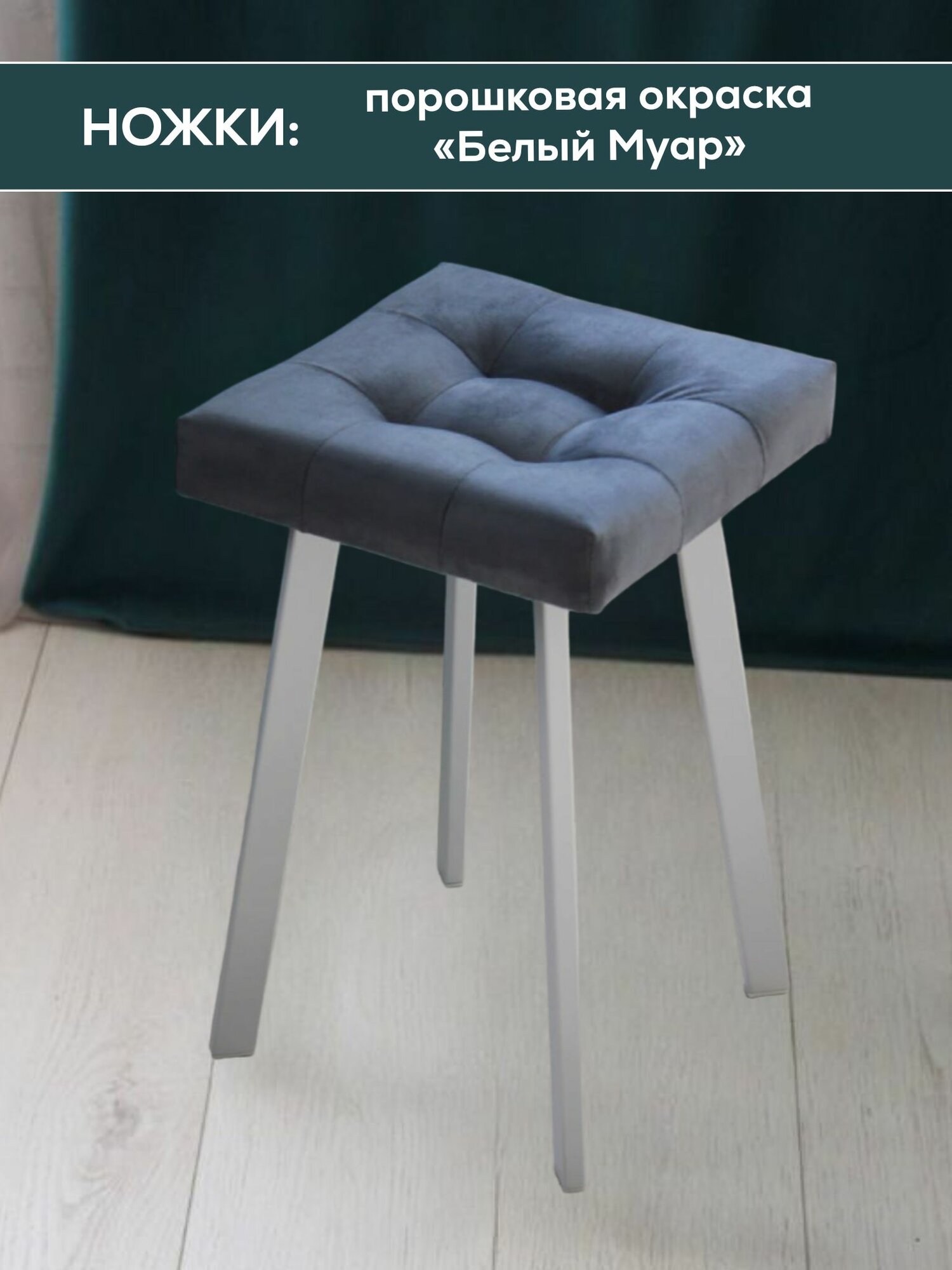 Табурет мягкий темно-серый с белыми ножками для кухни и дома усиленный информация: