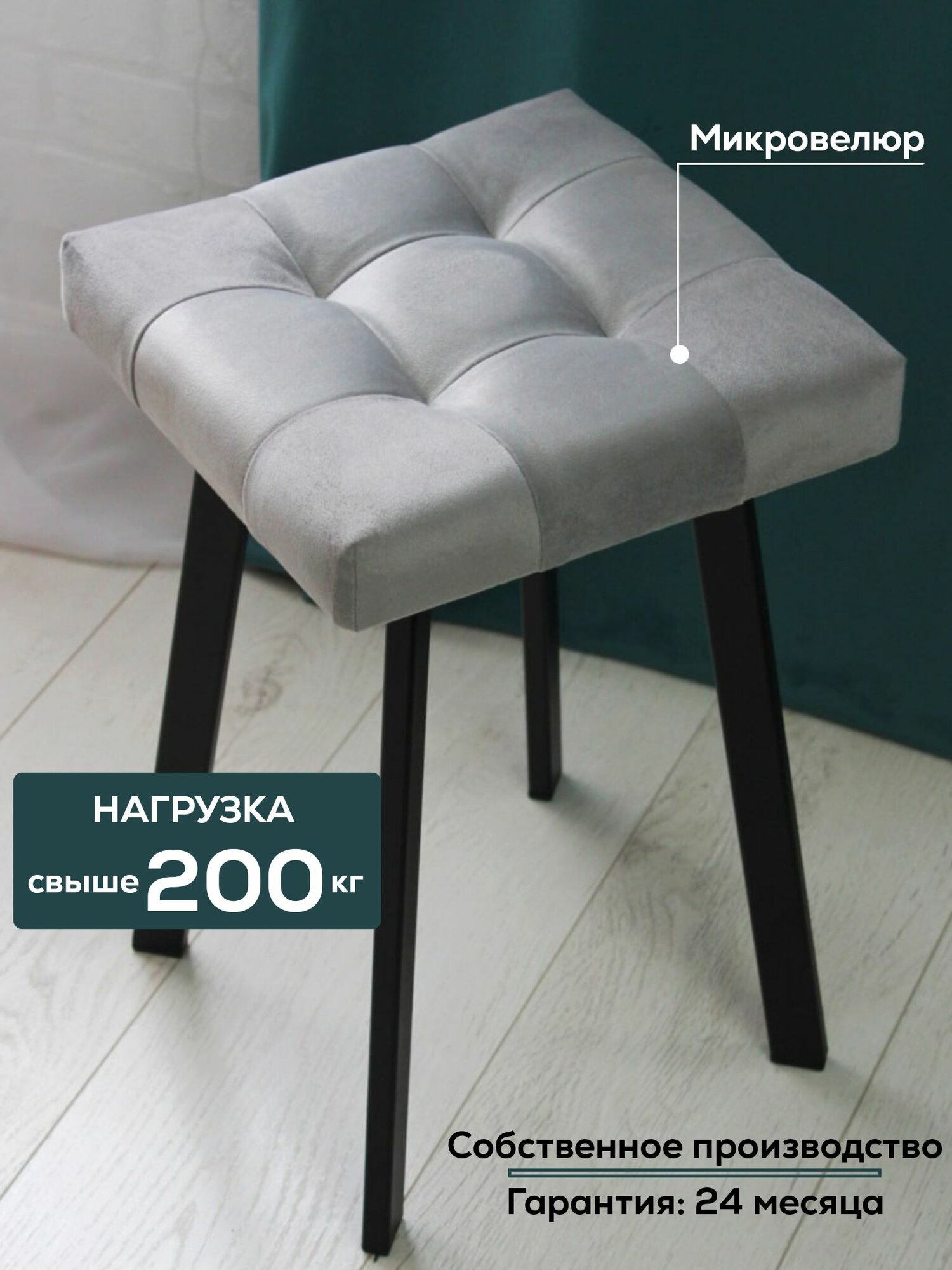 Табурет Linea Art, мягкий, велюр, металлический, усиленный, 30х30х46 см информация: