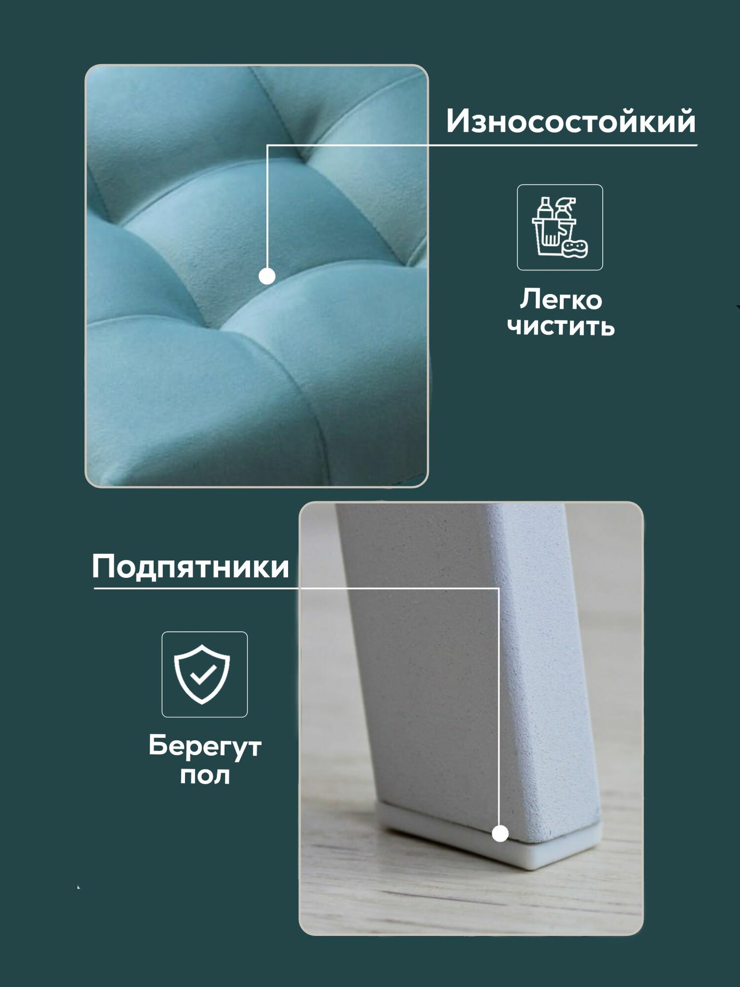 Табурет мягкий мятный с белыми ножками для кухни и дома усиленный информация: