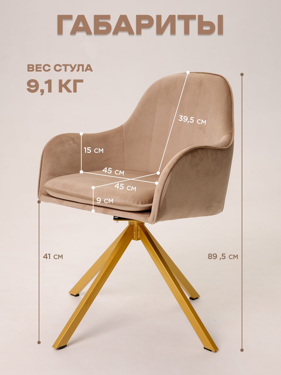Характиристики этого товара не найдены!Отзывы на Стул Санрайс золотистое основание, Уютный мастер, бежевый велюр