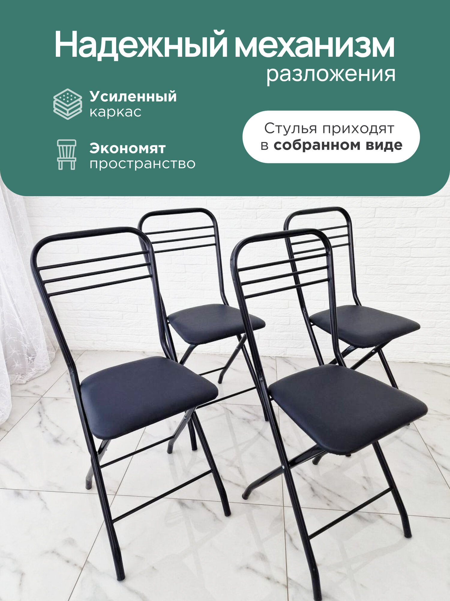 Стулья для кухни 4 шт "Застолье", складные, металлические, черные 8 990 ₽