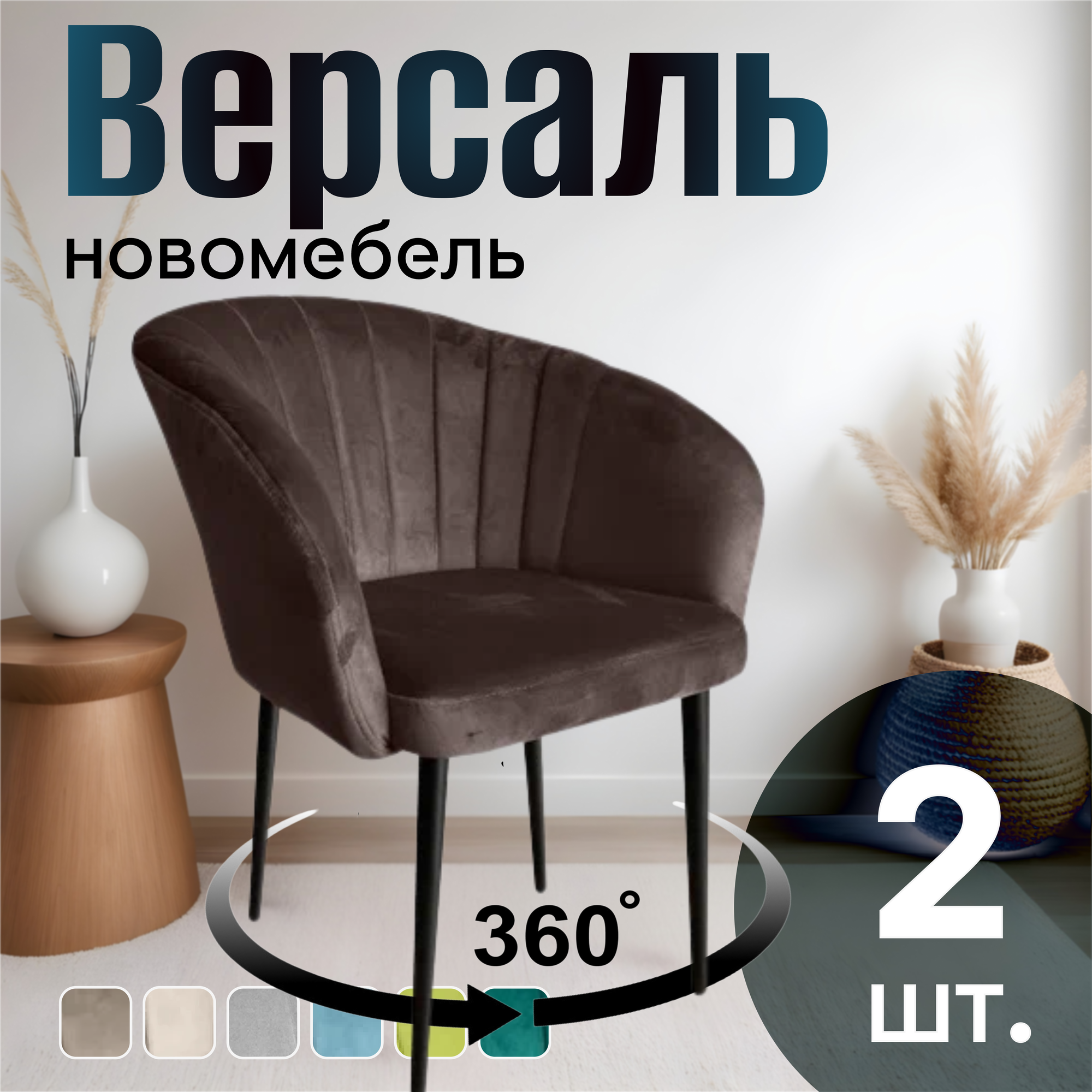Отзывы на Стулья для кухни поворотные мягкие комплект 2 шт НОВОМЕБЕЛЬ Версаль велюр Коричневый 360