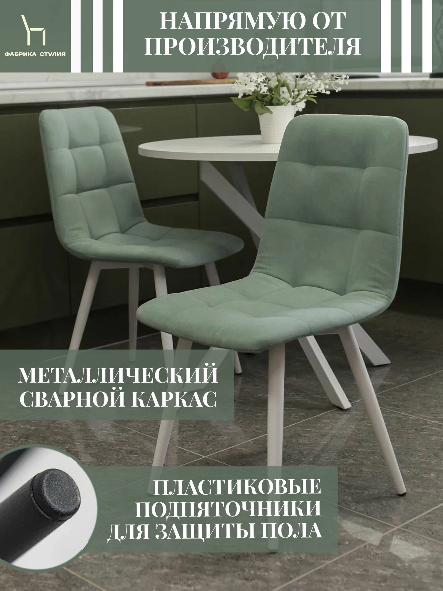 10 цен на Тедди Мягкий Стул для кухни из велюра, цвет оливковый, ножки белые/2 шт