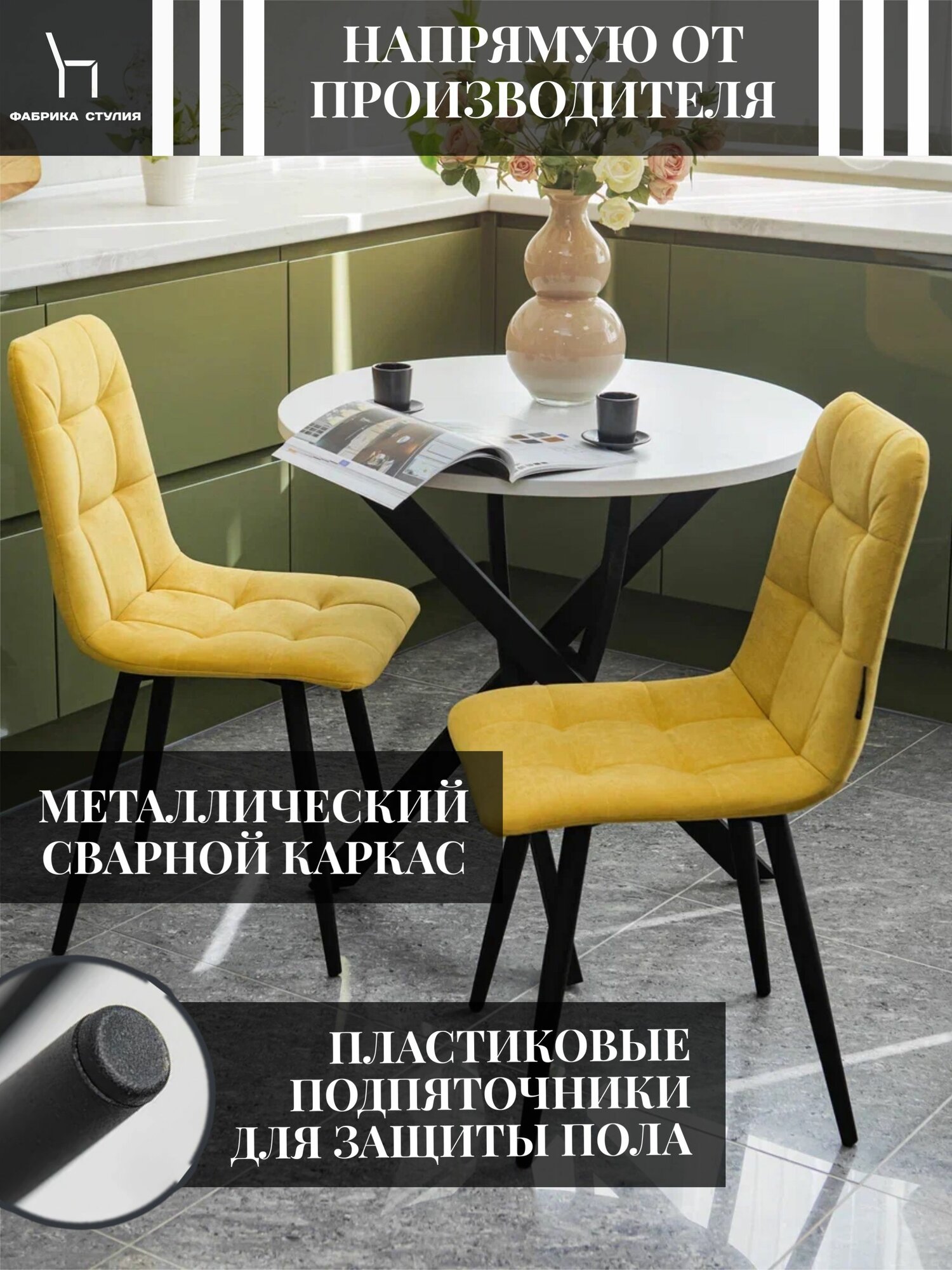 Стул Тедди для кухни из велюра/ Стул кухонный цвет горчица, ножки белые /4 шт