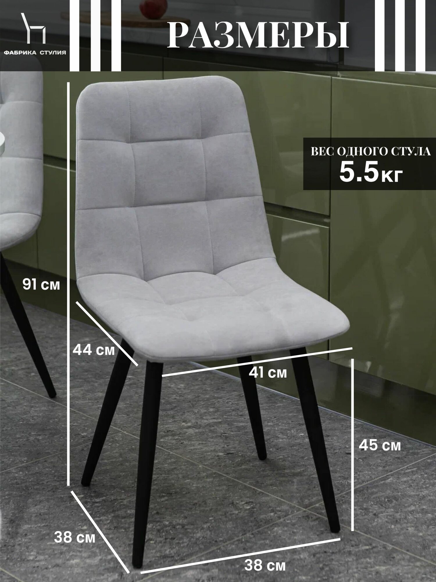 Тедди Стул мягкий со спинкой для кухни/ цвет светло-серый с черными ножками/2шт