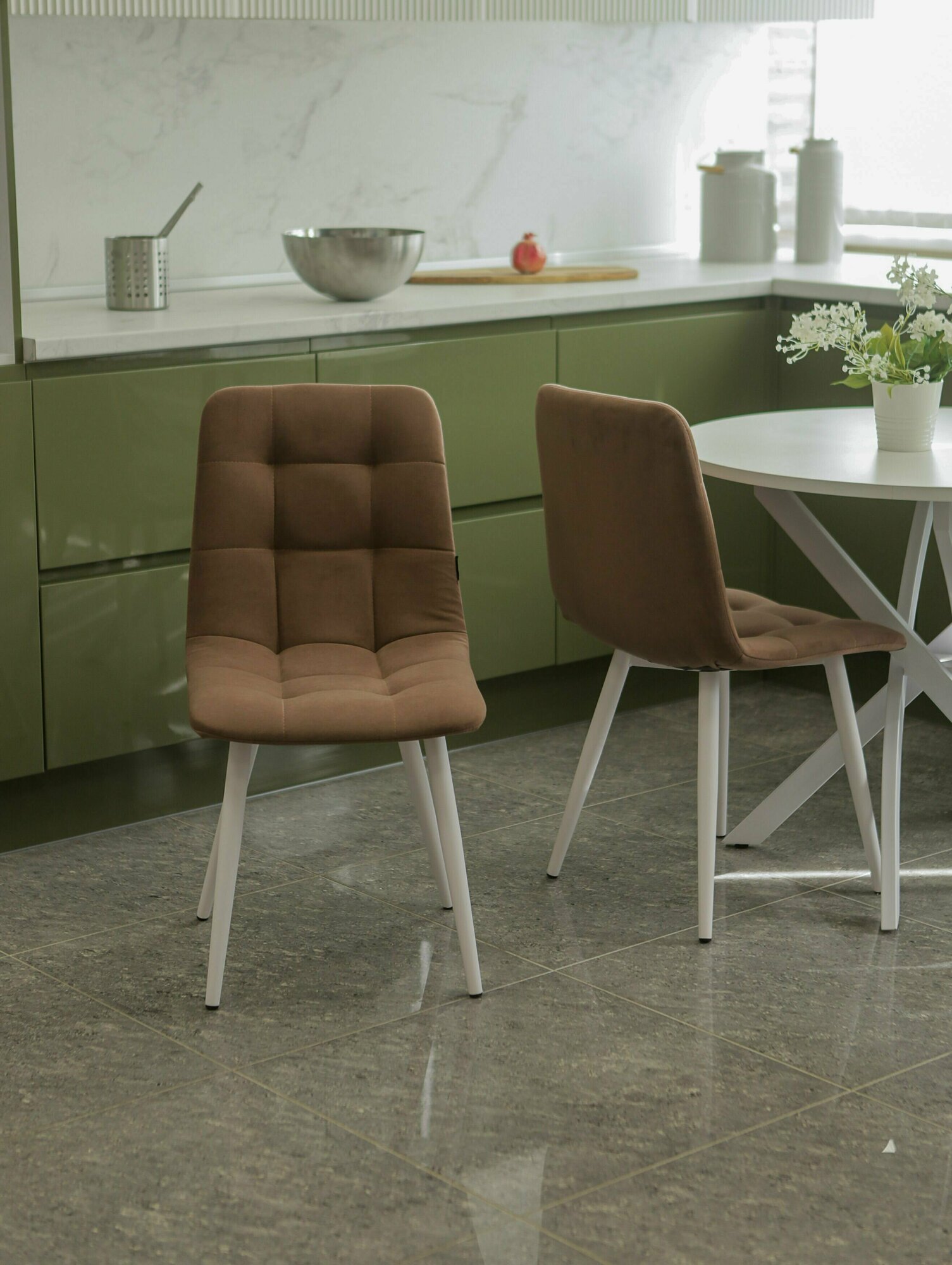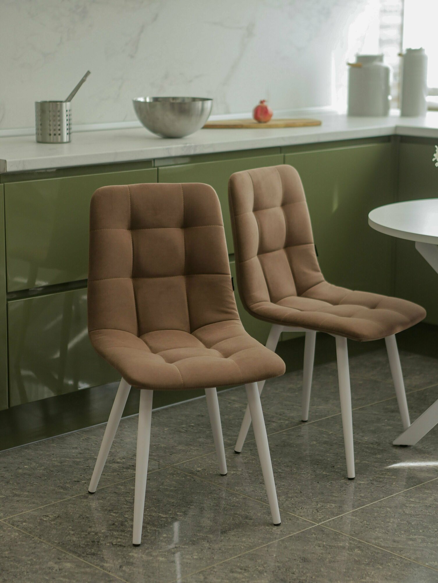 Тедди Мягкий Стул для кухни из велюра, цвет оливковый, ножки белые/2 шт 10 506 ₽