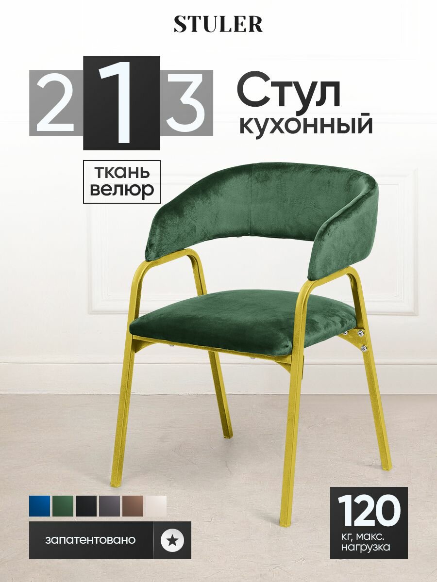 Характиристики этого товара не найдены!Отзывы на Зеленый стул для дома и офиса STULER chairs Amater, золотые ножки