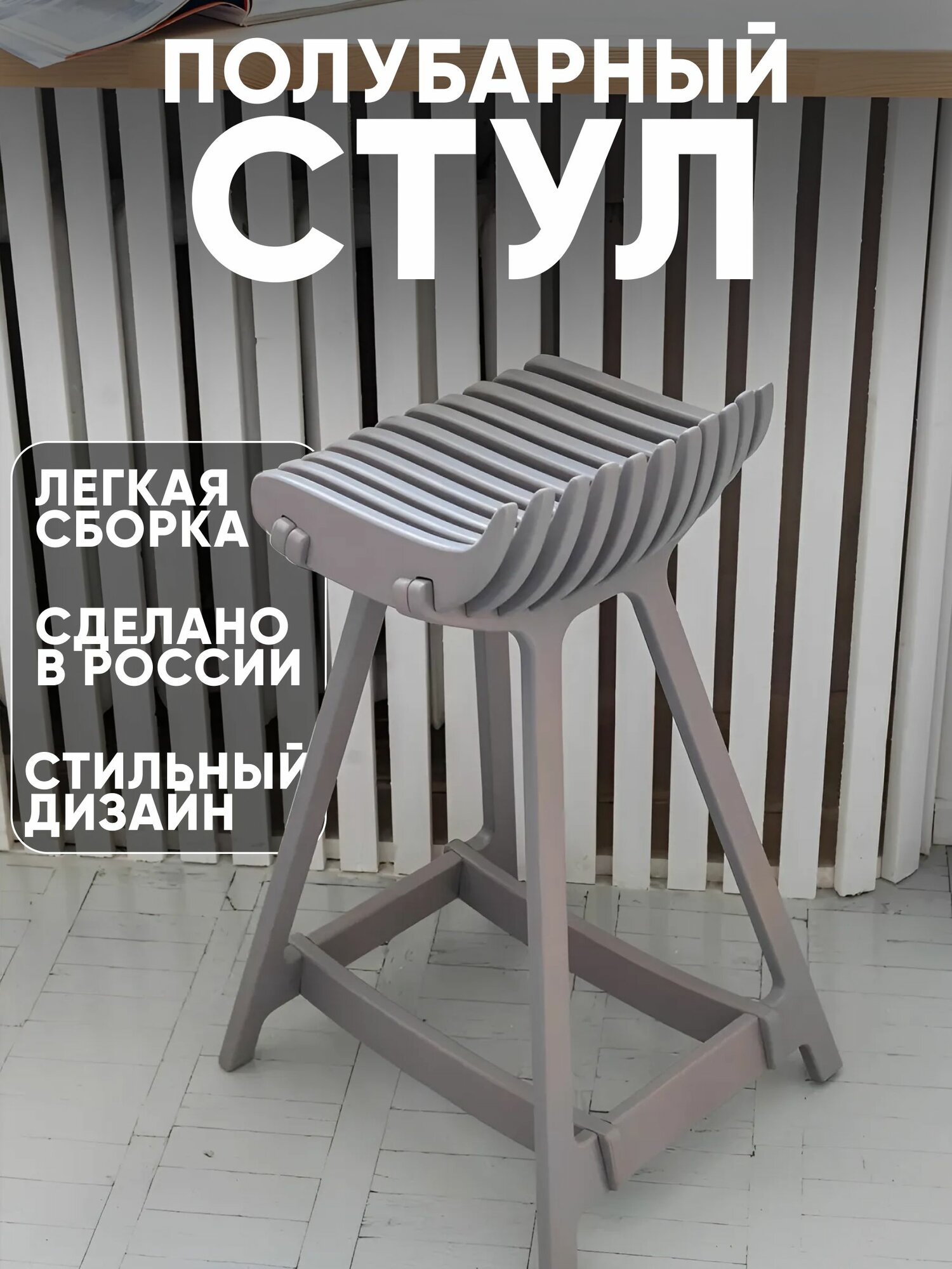 Барный стул PLAYWOODS, из дерева, для кухни, эргономичный, серый 6 800 ₽