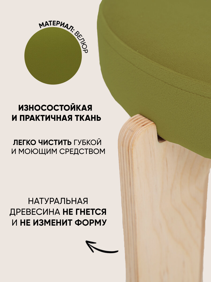 10 цен на Табурет для кухни мягкий, Axiomawood, светлый дуб + оливковый, нагрузка до 120кг