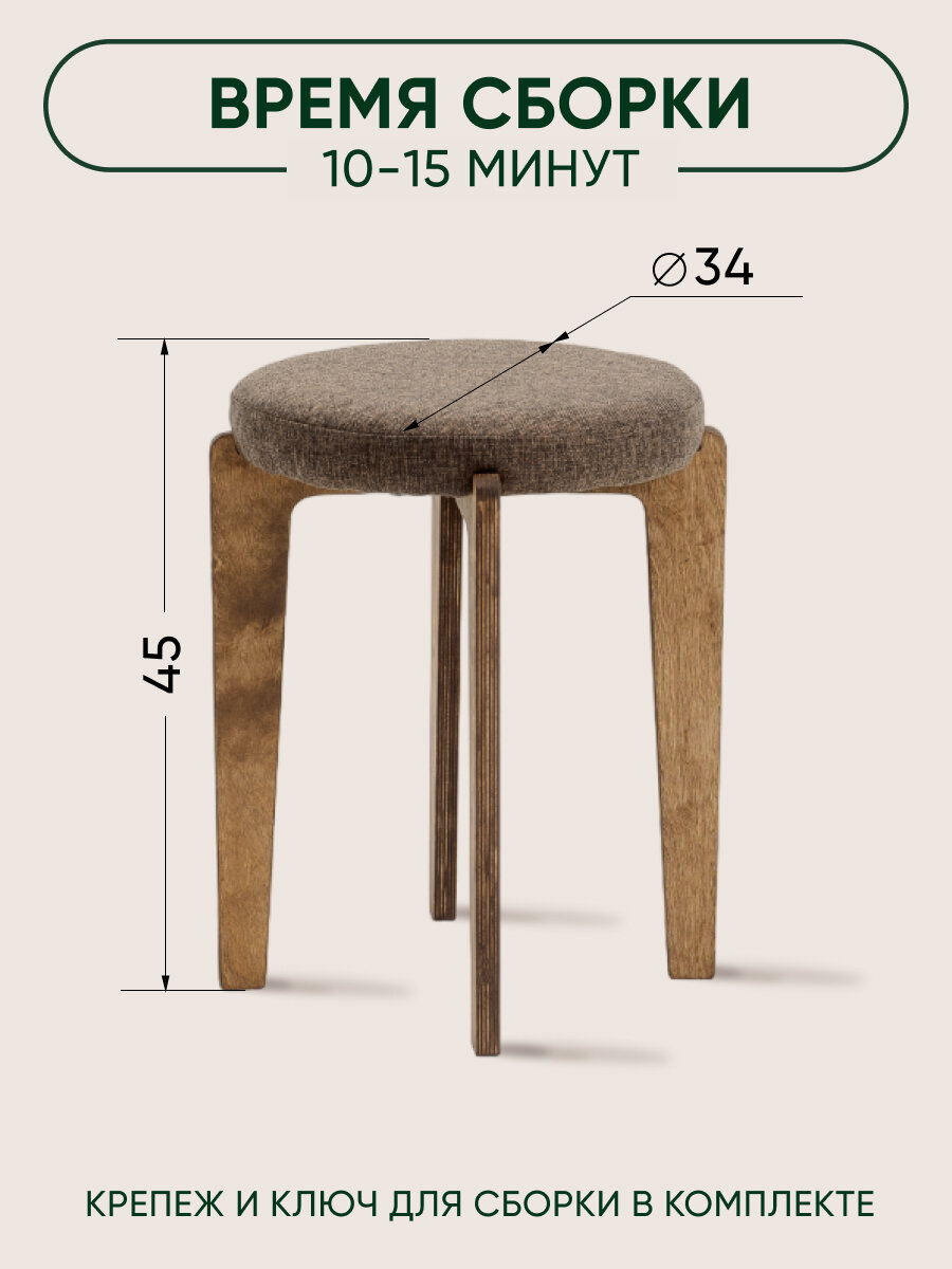 Табурет для кухни мягкий, Axiomawood, темный дуб + серый, нагрузка до 120кг 3 100 ₽