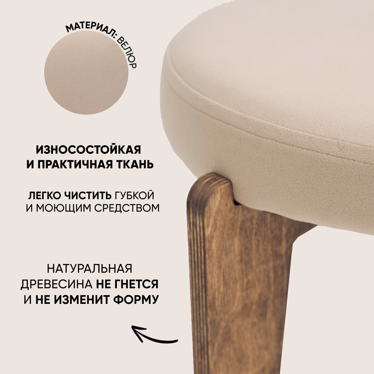 Табурет для кухни мягкий, Axiomawood, дуб + бежевый, нагрузка до 120кг 2 900 ₽