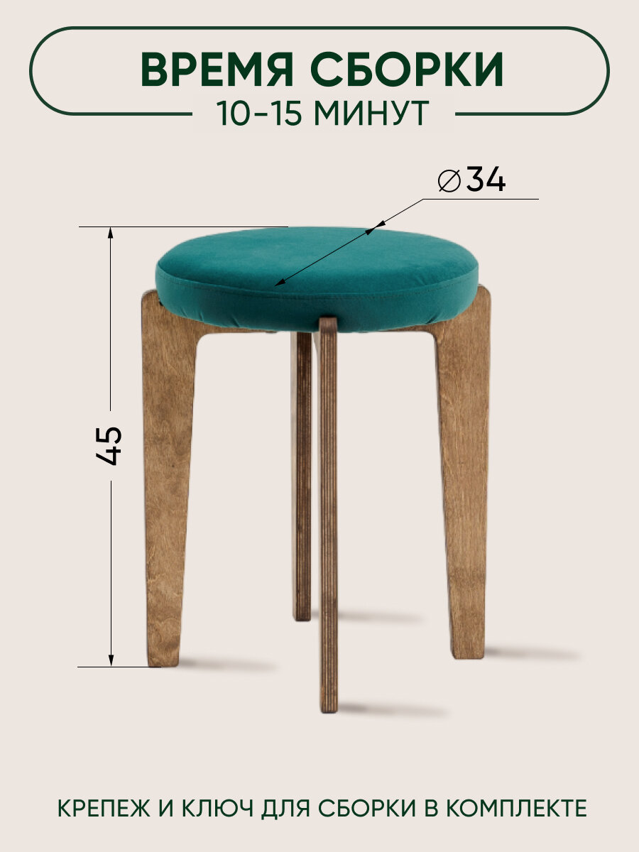 Табурет для кухни мягкий, Axiomawood, темный дуб + зеленый, нагрузка до 120кг 2 900 ₽