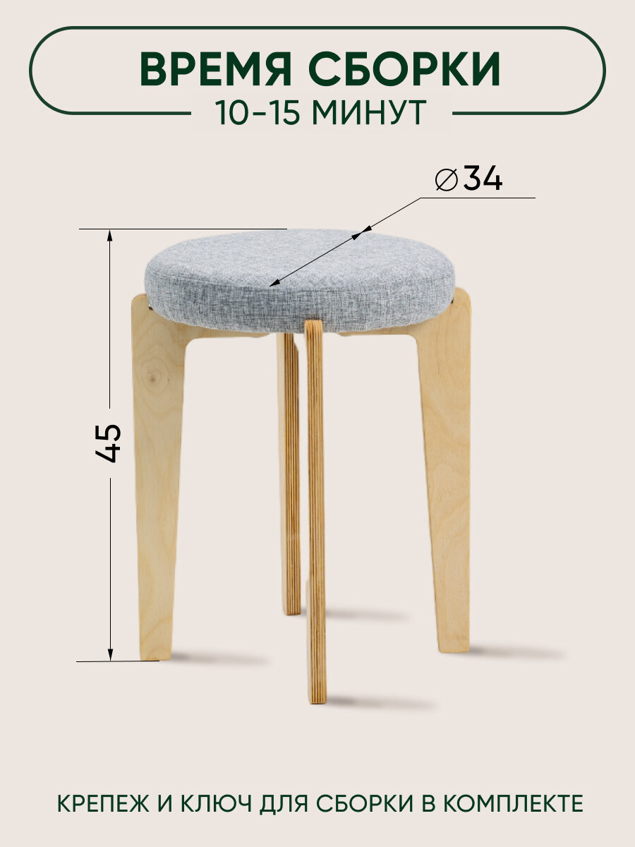 Табурет для кухни мягкий, Axiomawood, дуб + серый, нагрузка до 120кг 3 100 ₽