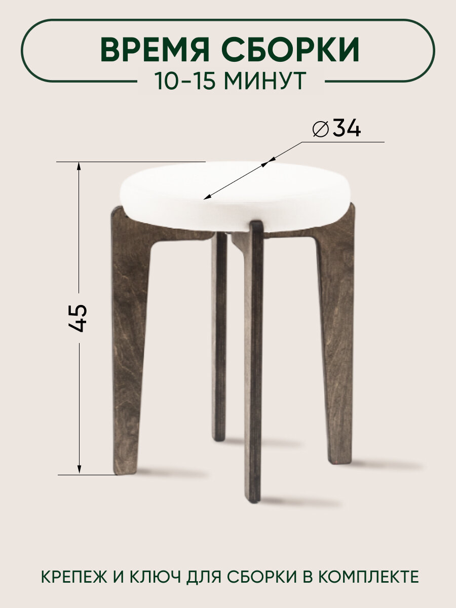 Табурет для кухни мягкий, Axiomawood, темный дуб + белый, нагрузка до 120кг 2 900 ₽