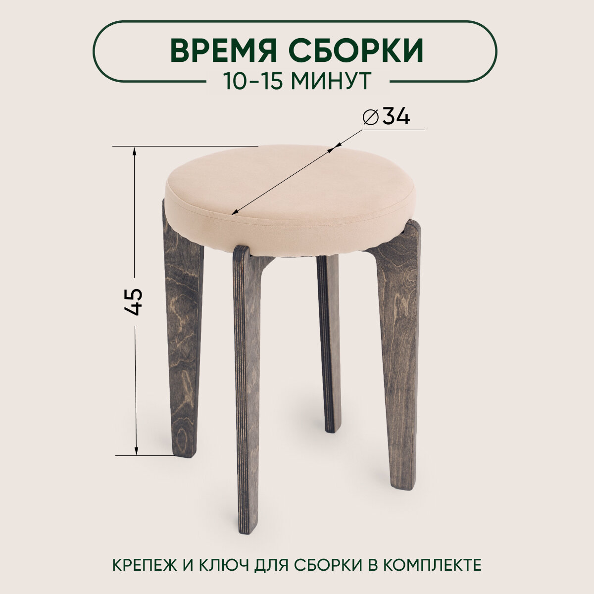 Отзывы на Табурет для кухни мягкий 2шт, Axiomawood, темный дуб + бежевый, нагрузка до 120кг