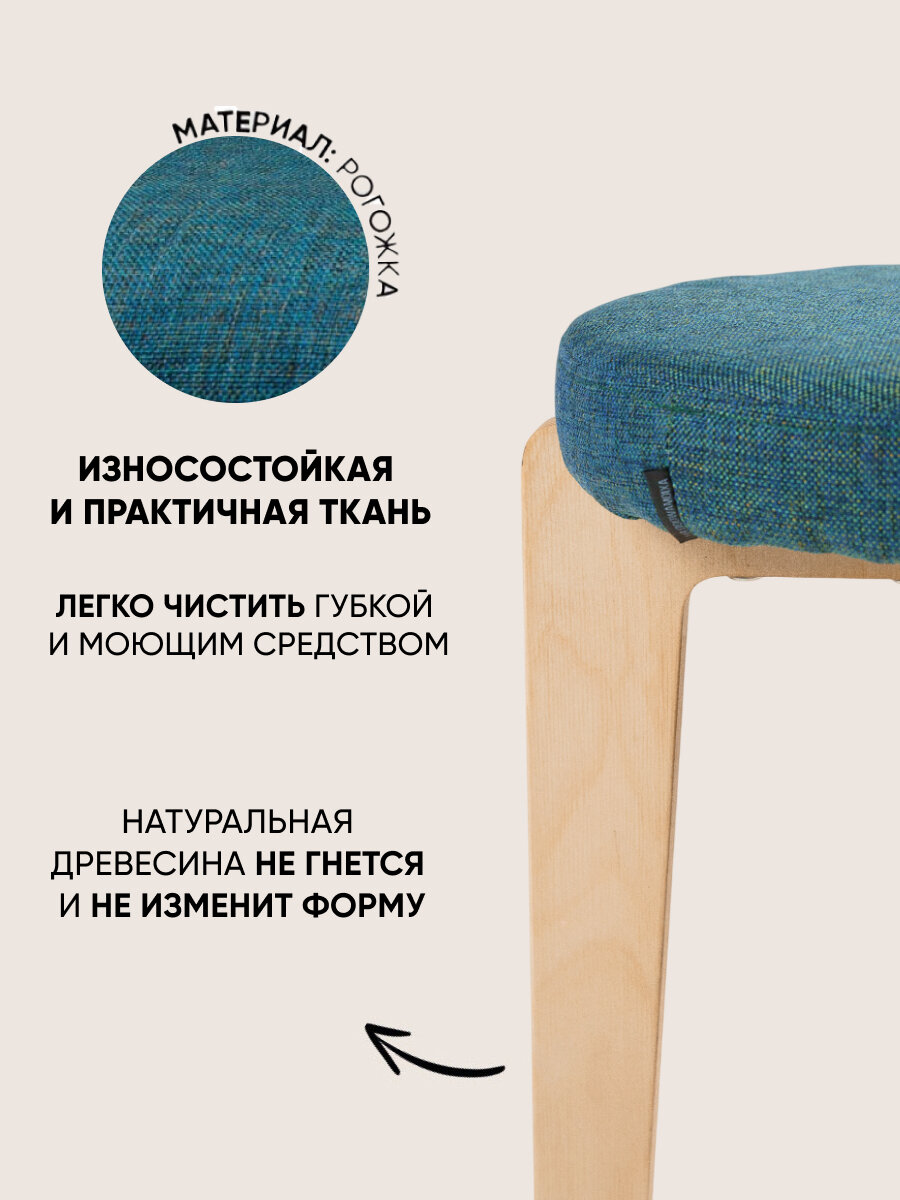 10 цен на Табурет для кухни мягкий, Axiomawood, светлый дуб + малахит, нагрузка до 120кг