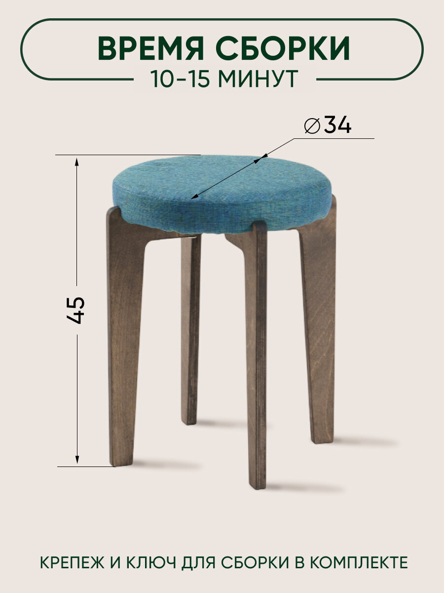 Табурет для кухни мягкий, Axiomawood, темный дуб + малахит, нагрузка до 120кг 3 100 ₽