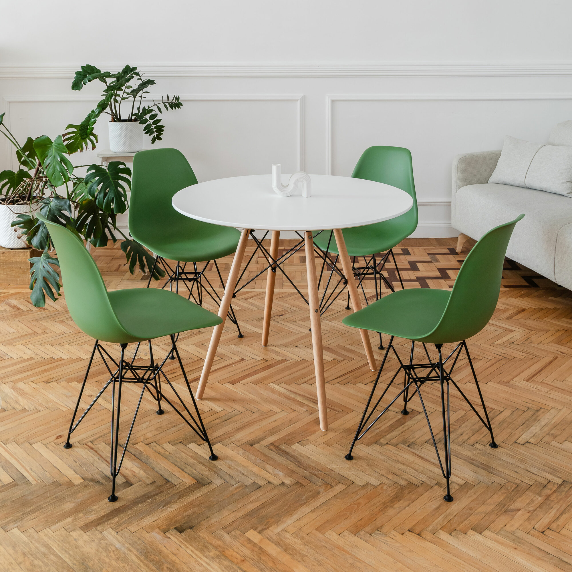 10 цен на Стул для кухни пластиковый на металлических ножках со спинкой обеденный интерьерный Eames Эймс, 1 шт. темно-зеленый