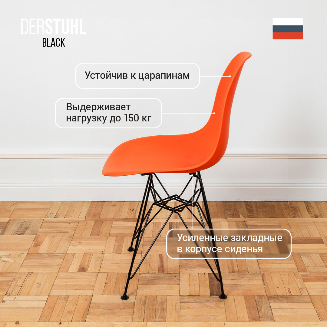 Отзывы на Стул для кухни пластиковый на металлических ножках со спинкой обеденный интерьерный Eames Эймс, 1 шт. оранжевый