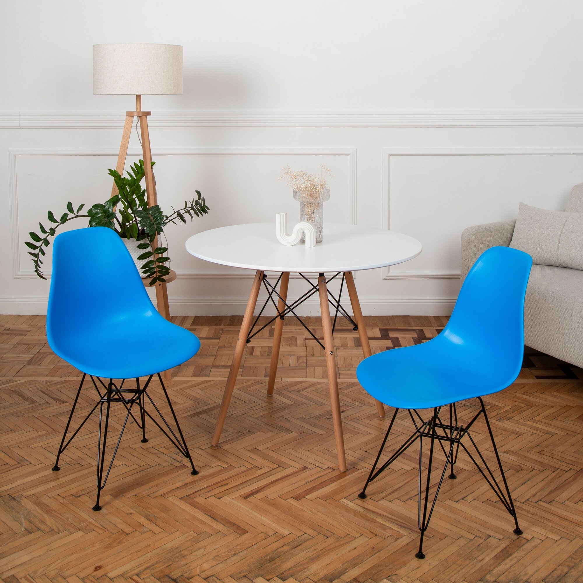 Стулья для кухни пластиковые на металлических ножках со спинкой обеденные интерьерные Eames Эймс, 2 шт, голубой 10 500 ₽