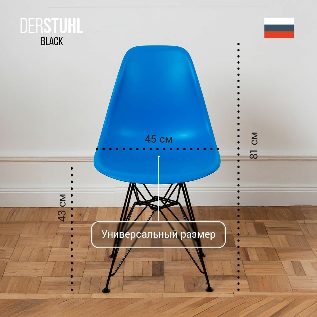 10 цен на Стул для кухни пластиковый на металлических ножках со спинкой обеденный интерьерный Eames Эймс, 1 шт, синий