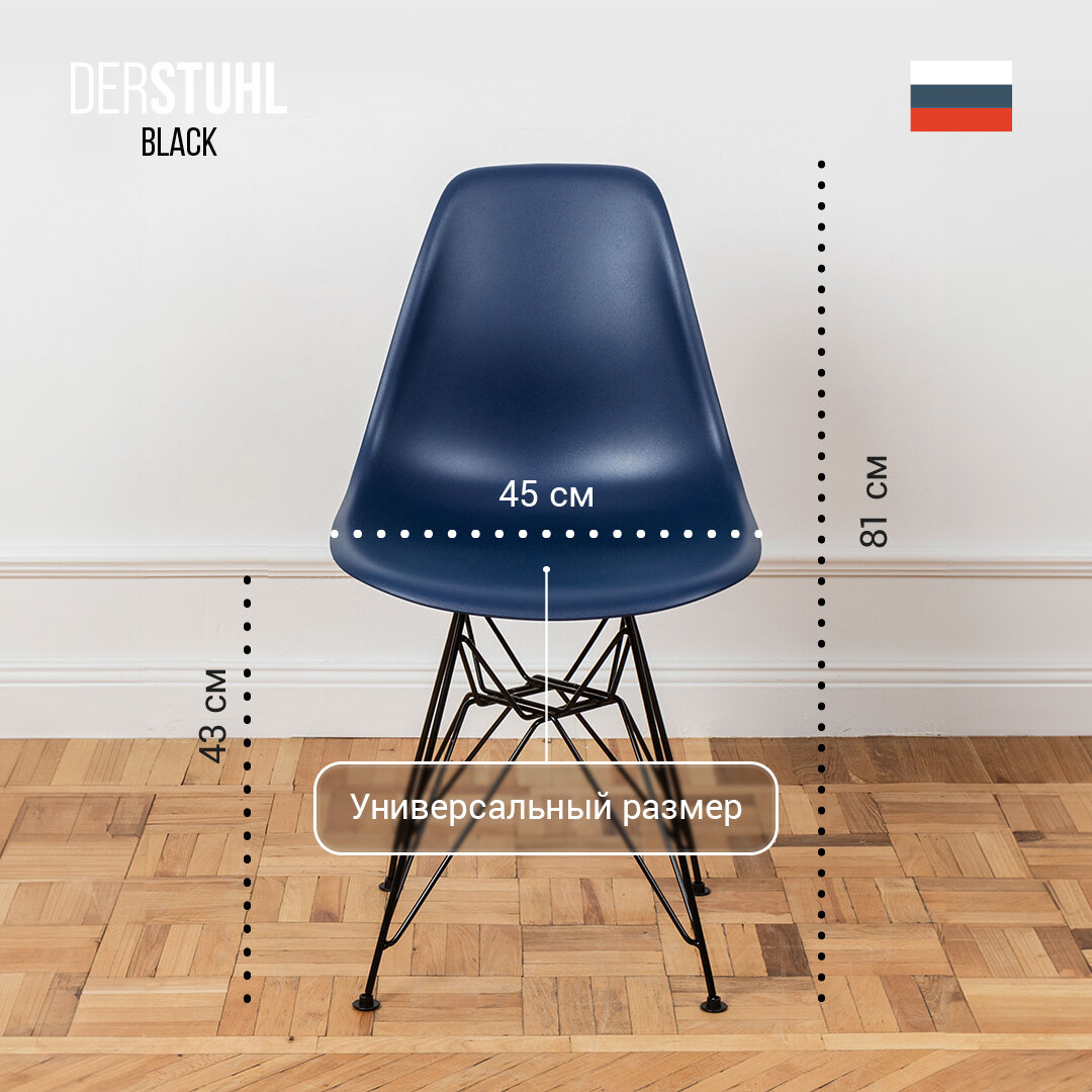 10 цен на Стулья для кухни пластиковые на металлических ножках со спинкой обеденные интерьерные Eames Эймс, 4 шт. темно-синий