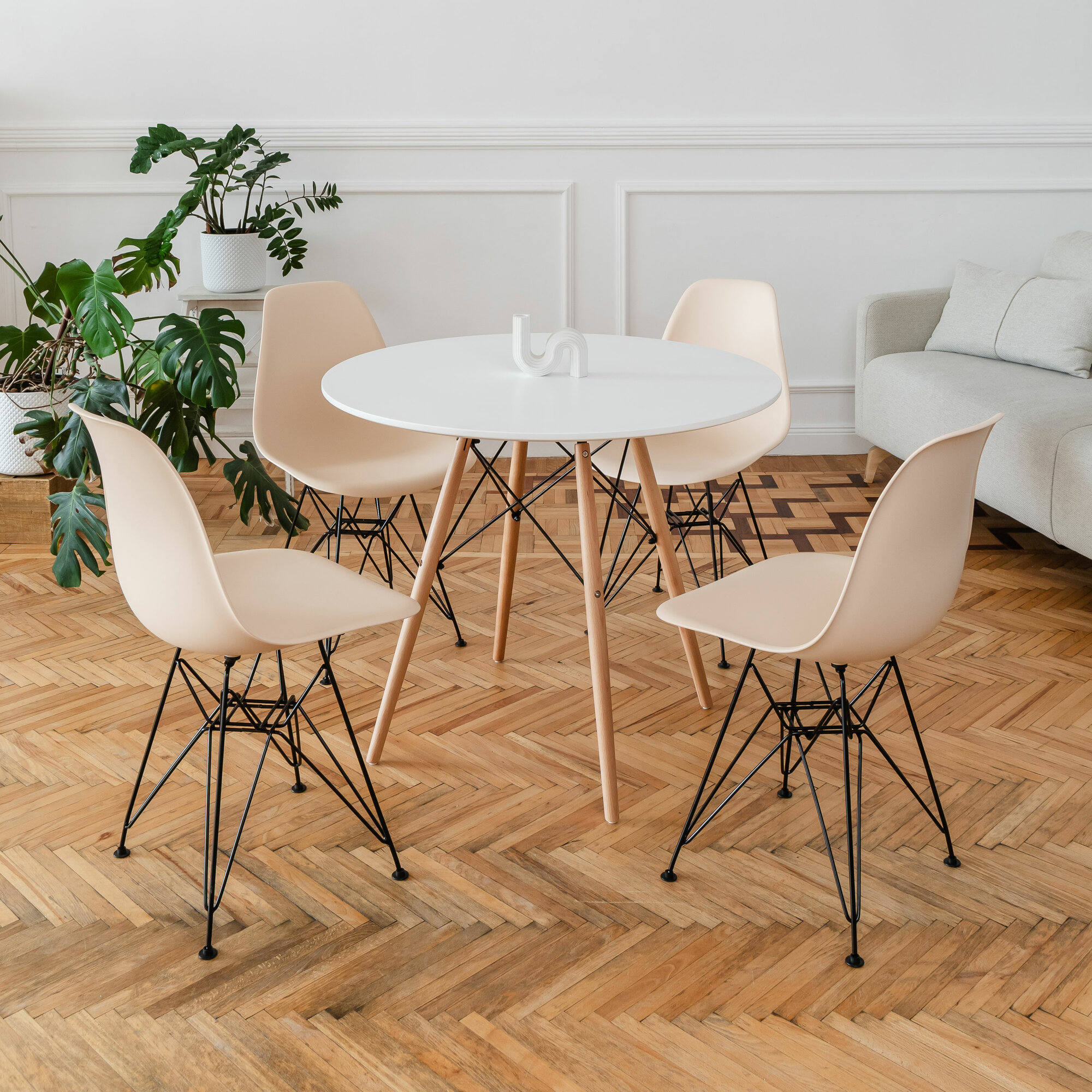10 цен на Стулья для кухни пластиковые на металлических ножках со спинкой обеденные интерьерные Eames Эймс, 2 шт. светло-бежевый