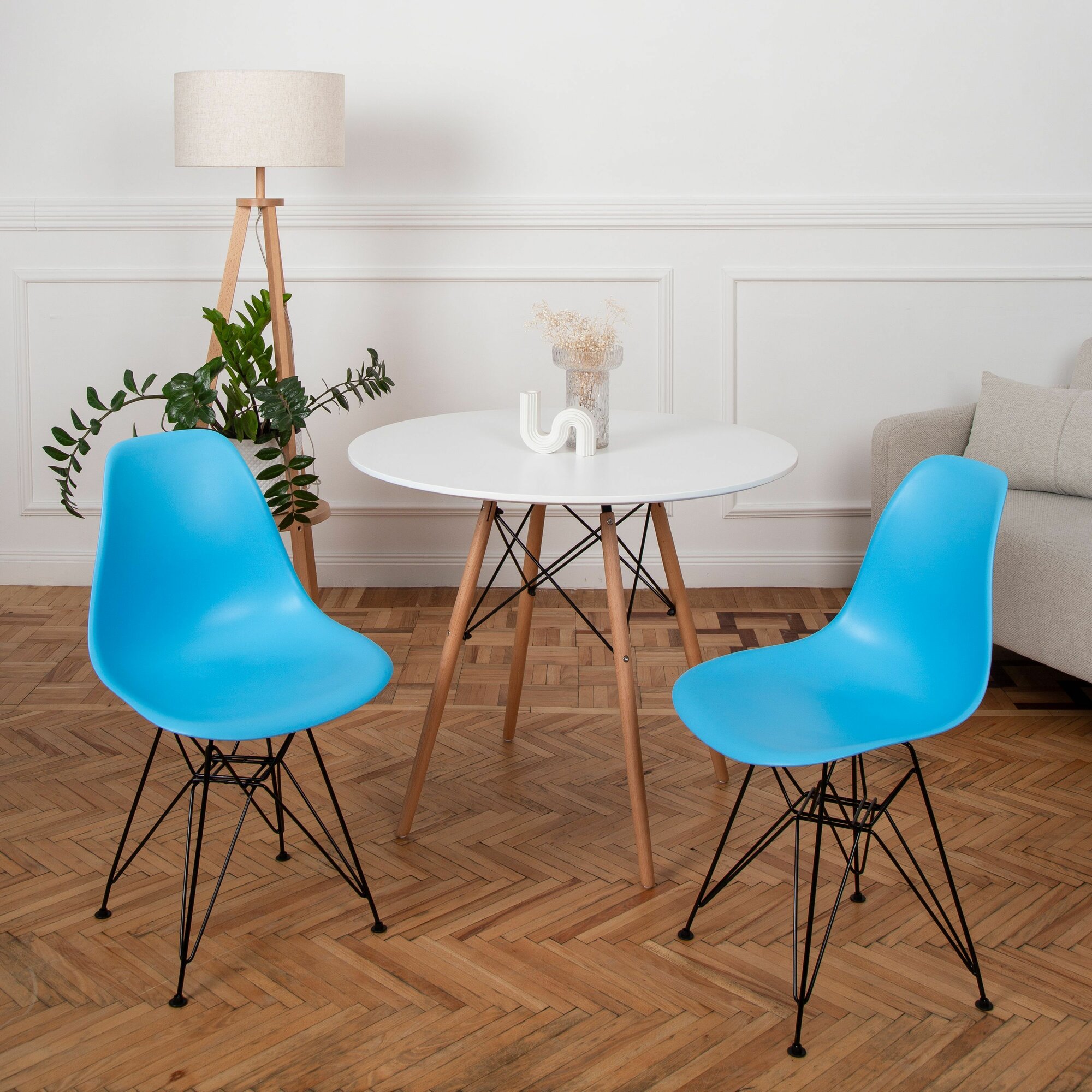 10 цен на Стулья для кухни пластиковые на металлических ножках со спинкой обеденные интерьерные Eames Эймс, 2 шт, голубой