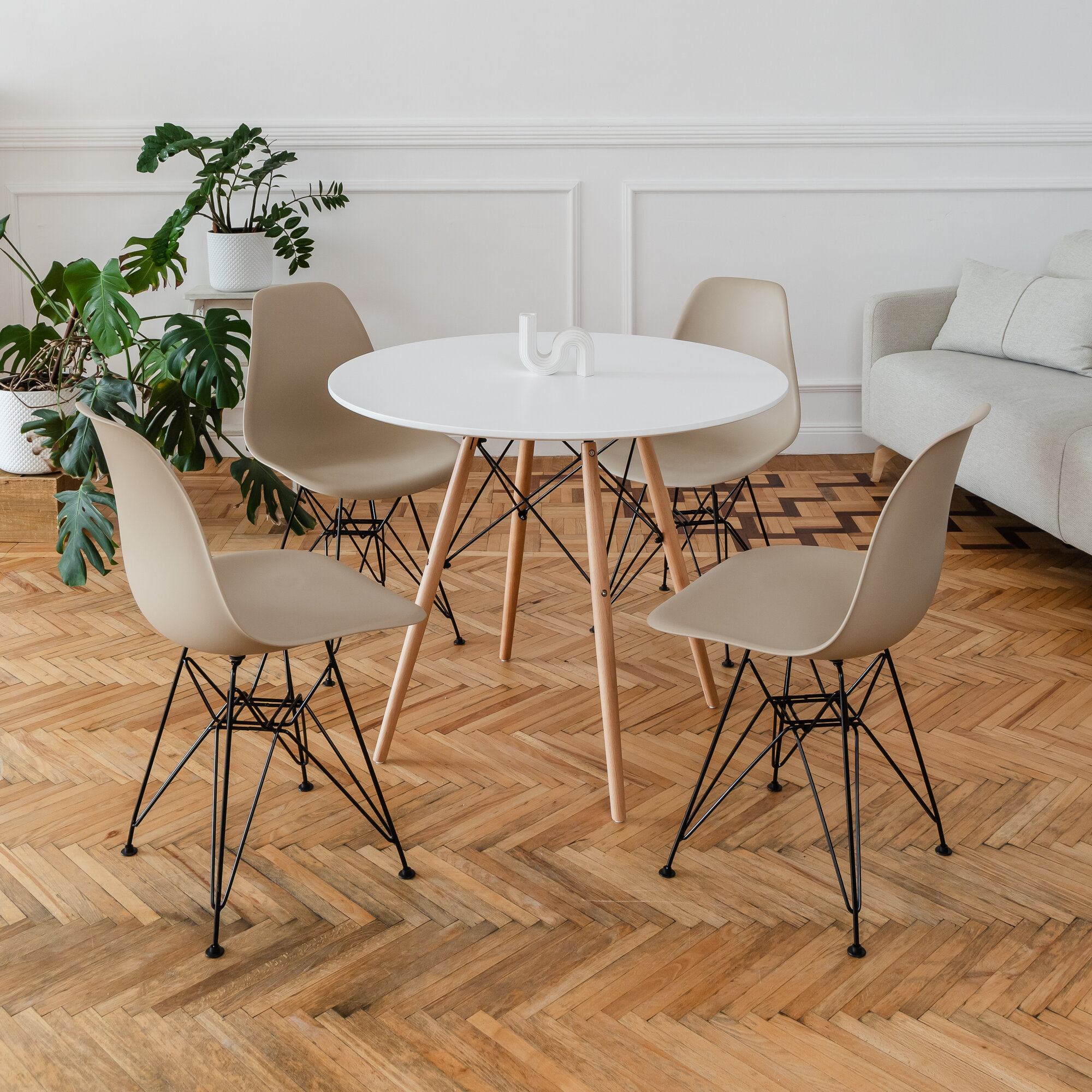 10 цен на Стулья для кухни пластиковые на металлических ножках со спинкой обеденные интерьерные Eames Эймс, 4 шт. темно-бежевый