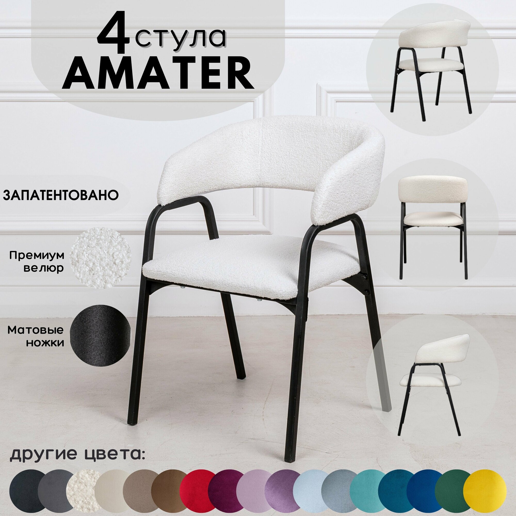 Стулья STULER Chairs Amater, велюр, комплект 4 штуки, ножки, мягкое сиденье информация: