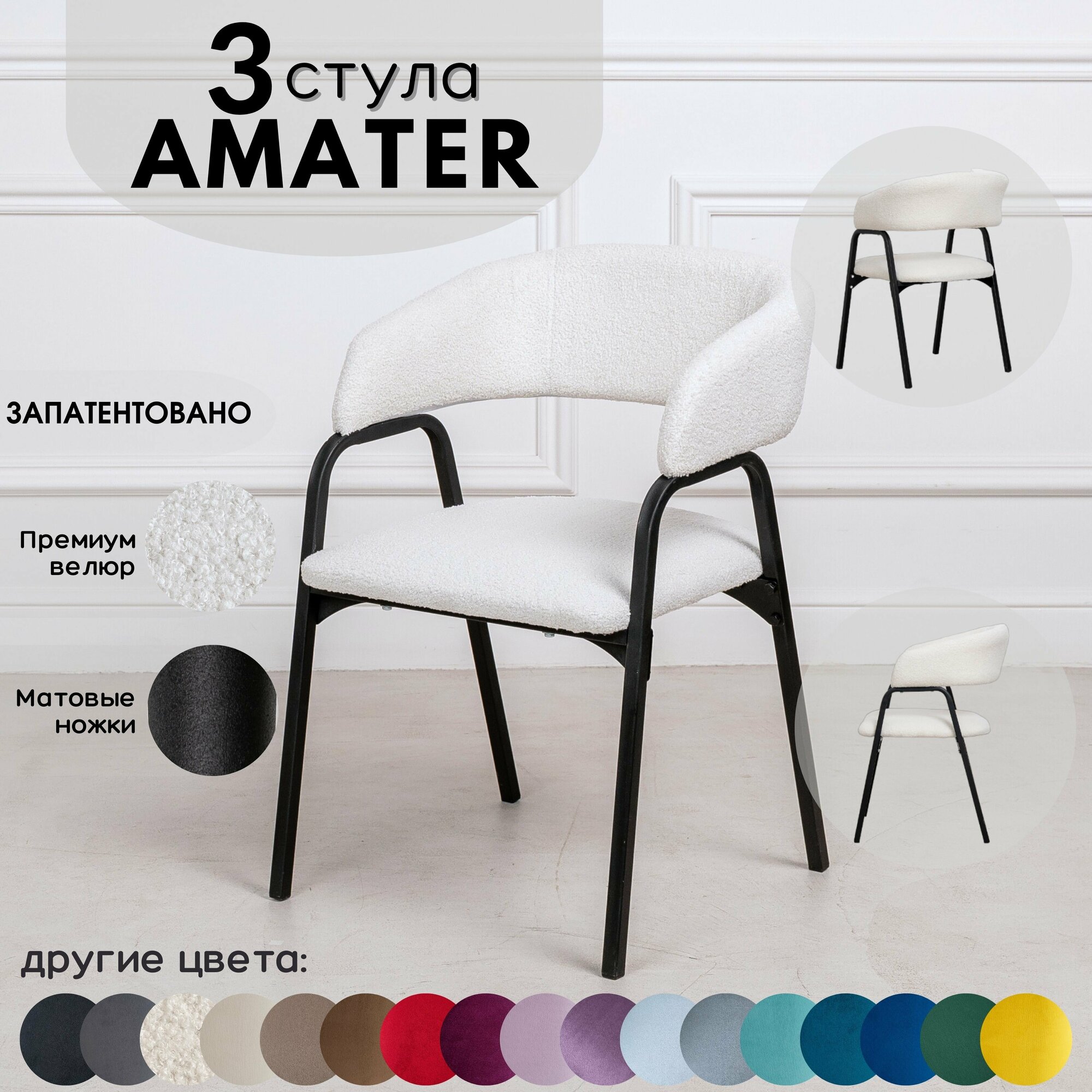 Отзывы на Стулья STULER Chairs Amater, белые, велюр, мягкое сиденье, 3шт