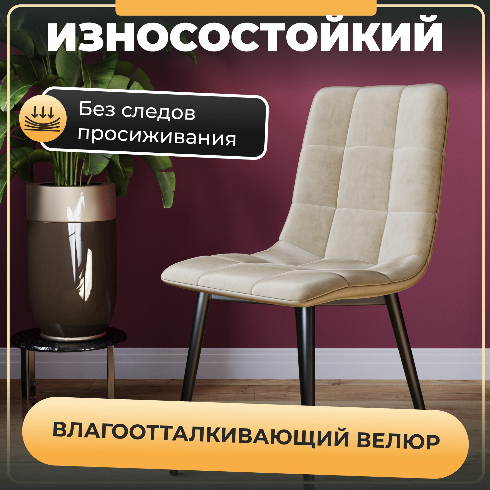 Отзывы на Комплект (2 шт) мягких стульев для кухни Чили, бархатный велюр антикоготь, металлические ножки