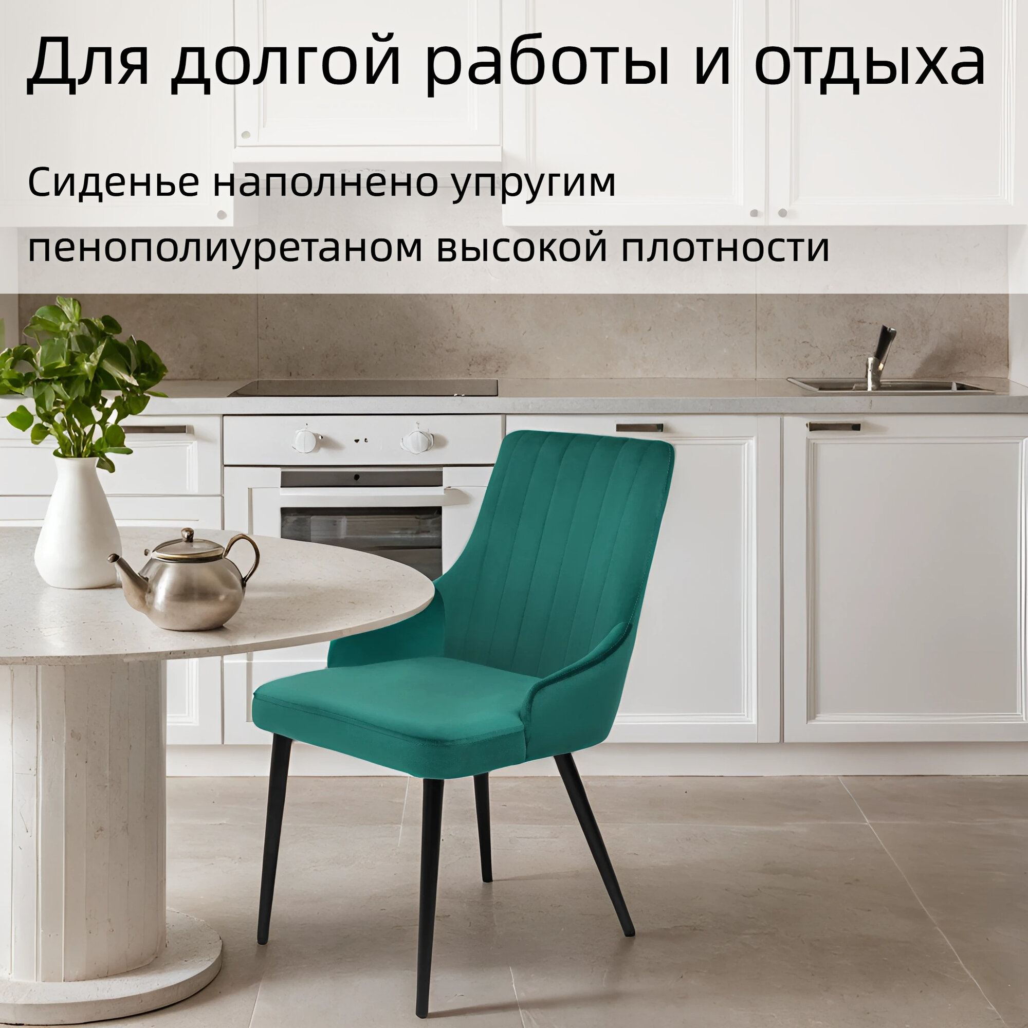 Кухонный стул с анатомической спинкой и мягким сиденьем, Морская волна велюр 8 795 ₽