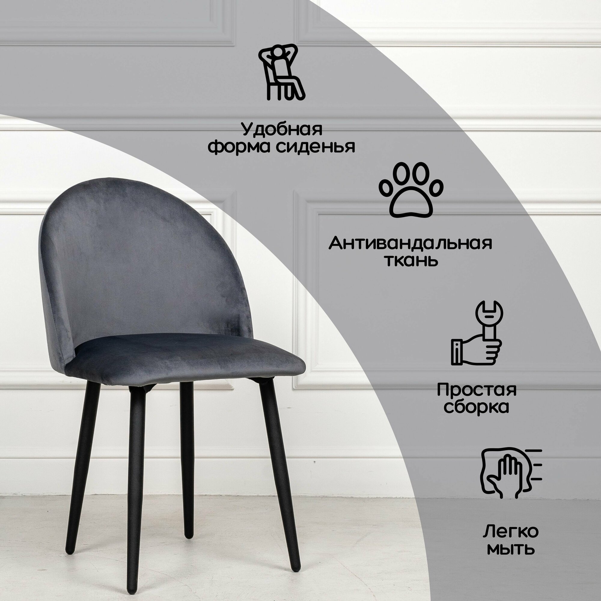 Отзывы на Стулья для кухни STULER chairs Комплект мягких стульев Millaura 4 шт, Серый велюр черные матовые ножки