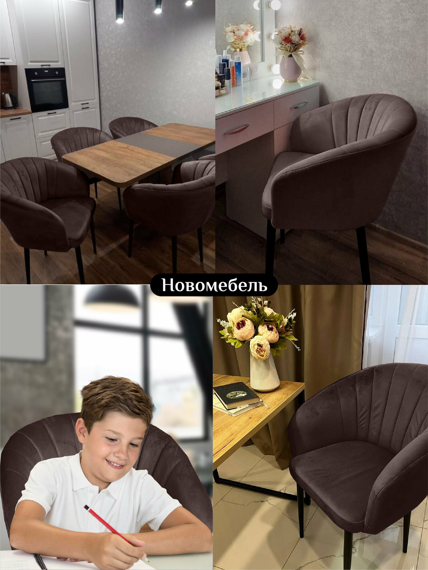 Характиристики этого товара не найдены!Отзывы на Стулья для кухни мягкие комплект 2 шт новомебель Версаль велюр Коричневый