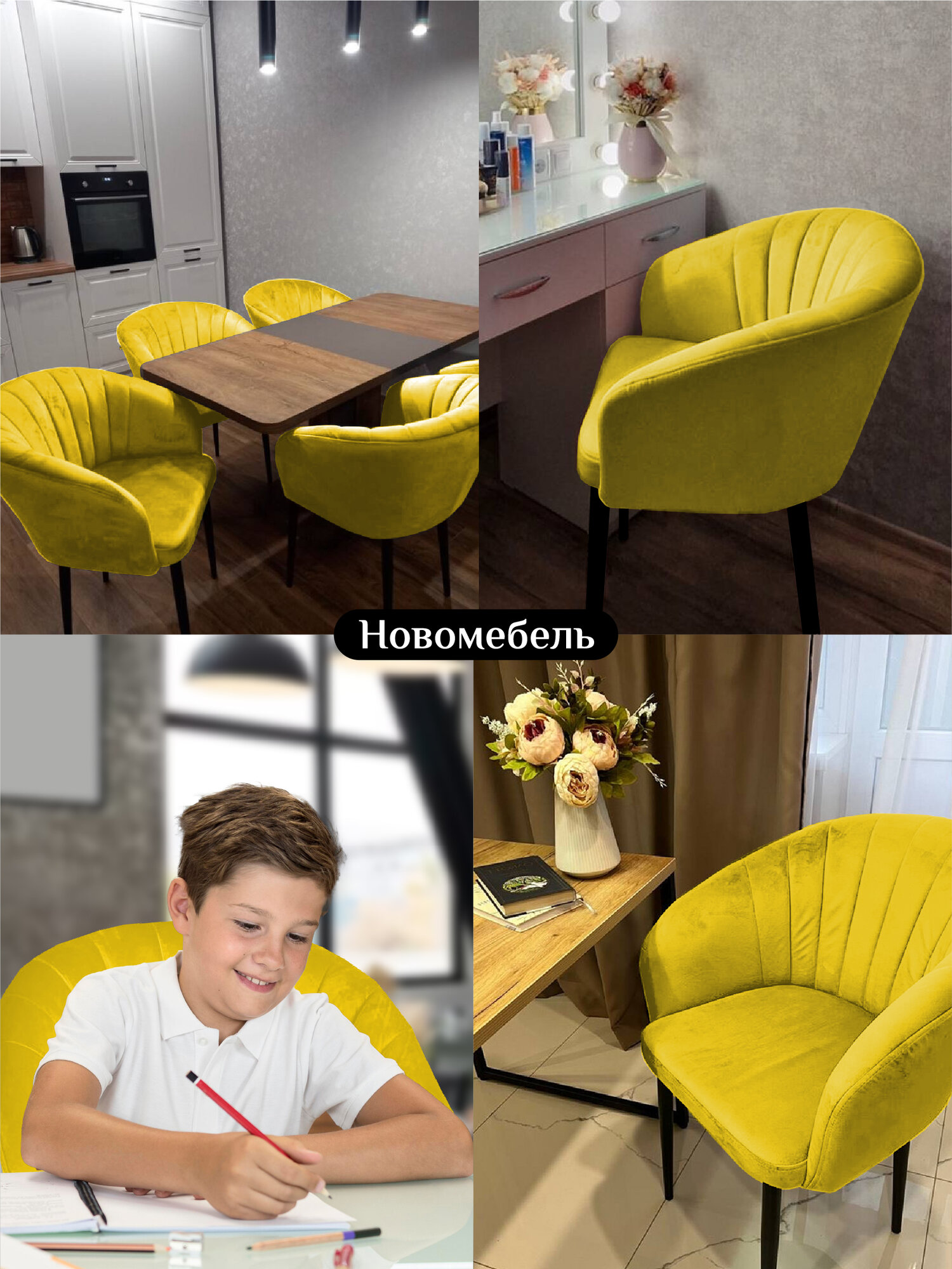 Характиристики этого товара не найдены!Отзывы на Стулья для кухни мягкие комплект 2 шт новомебель Версаль велюр Желтый