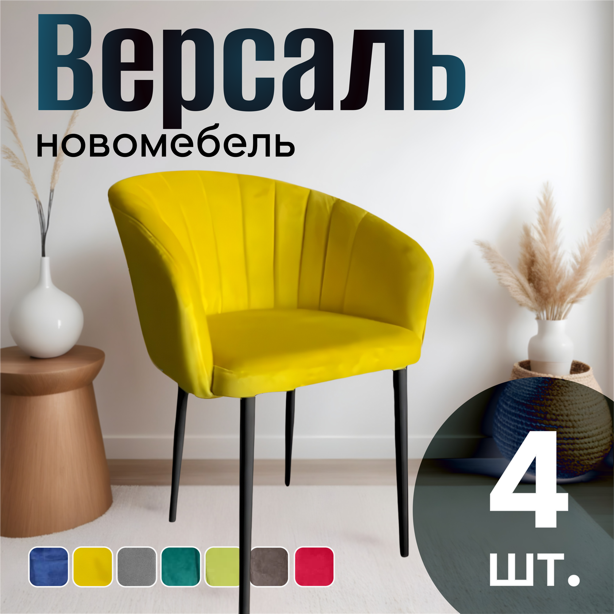 Характиристики этого товара не найдены!Отзывы на Стулья для кухни мягкие комплект 4 шт новомебель Версаль велюр Желтый