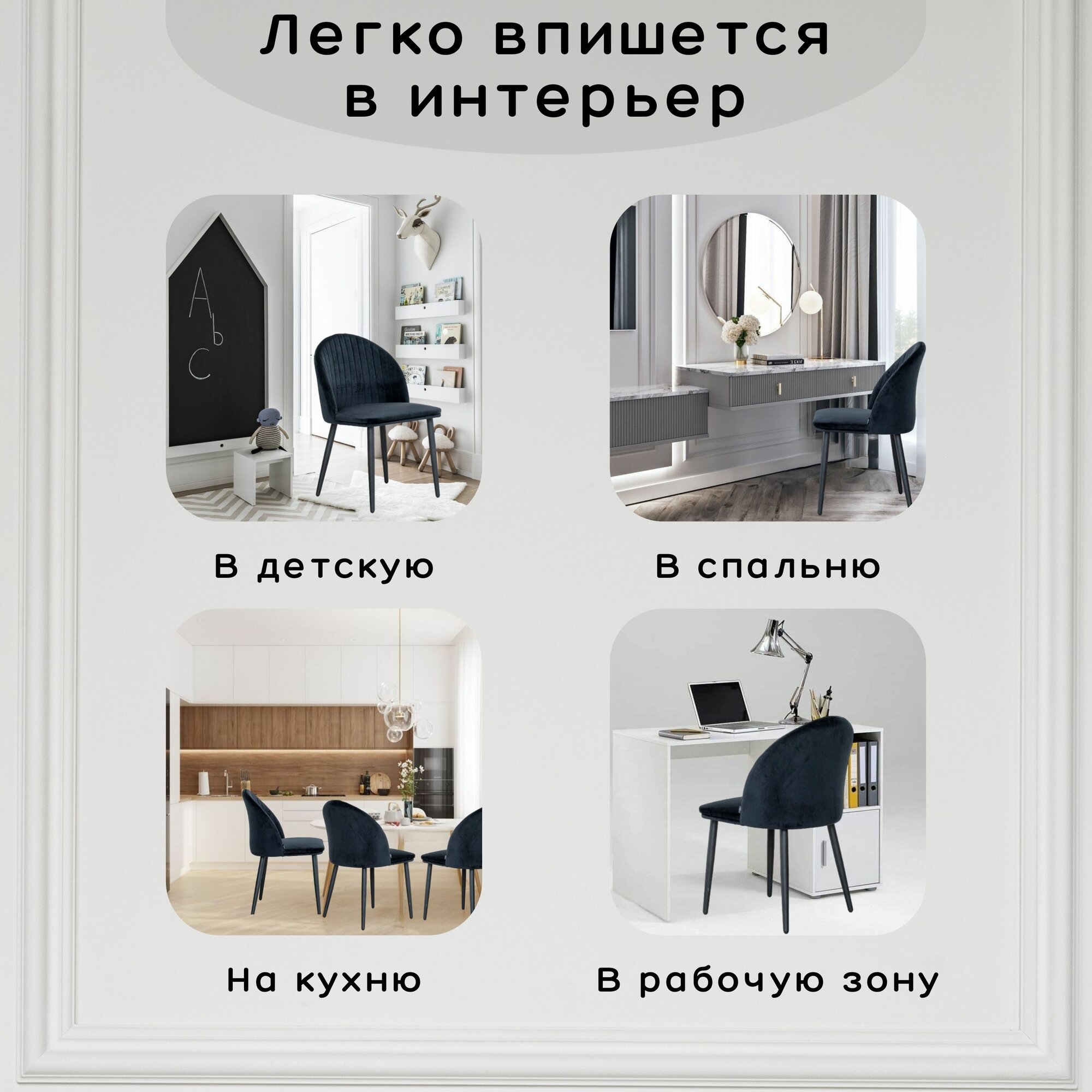 Стулья для кухни комплект 4 шт Melvis Черный с черными матовыми ножками 18 290 ₽