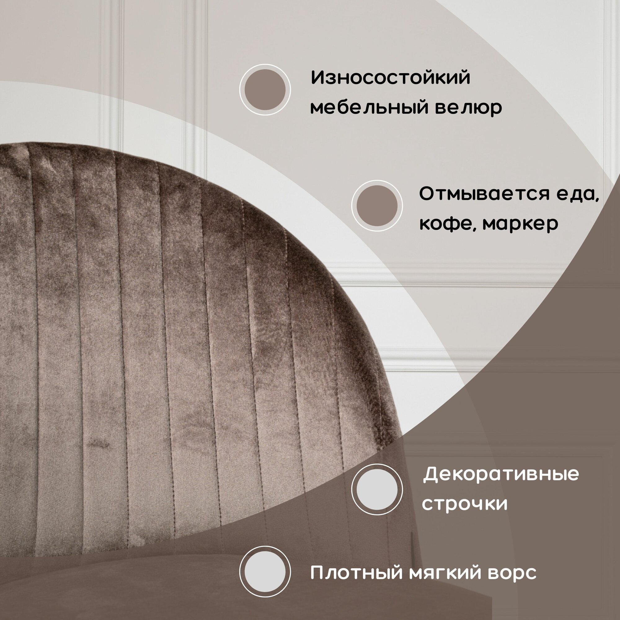 Стул Мики 1шт, DecoLine, каркас чёрный, велюр искусственный, тон серый.