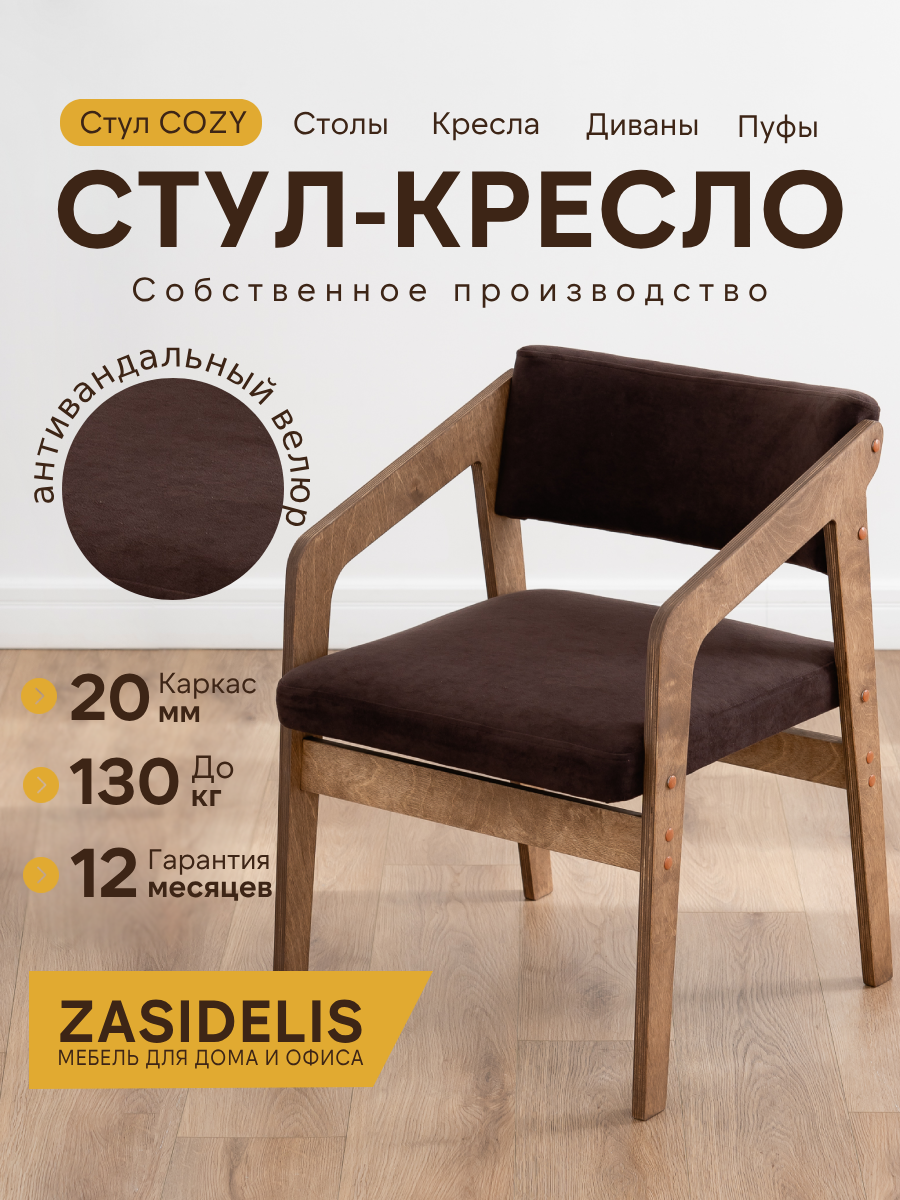 Характиристики этого товара не найдены!Отзывы на Стул ZASIDELIS кози мягкий для кухни дома и офиса коричневый/коричневый, велюр, 52х58х72 см, до 130 кг