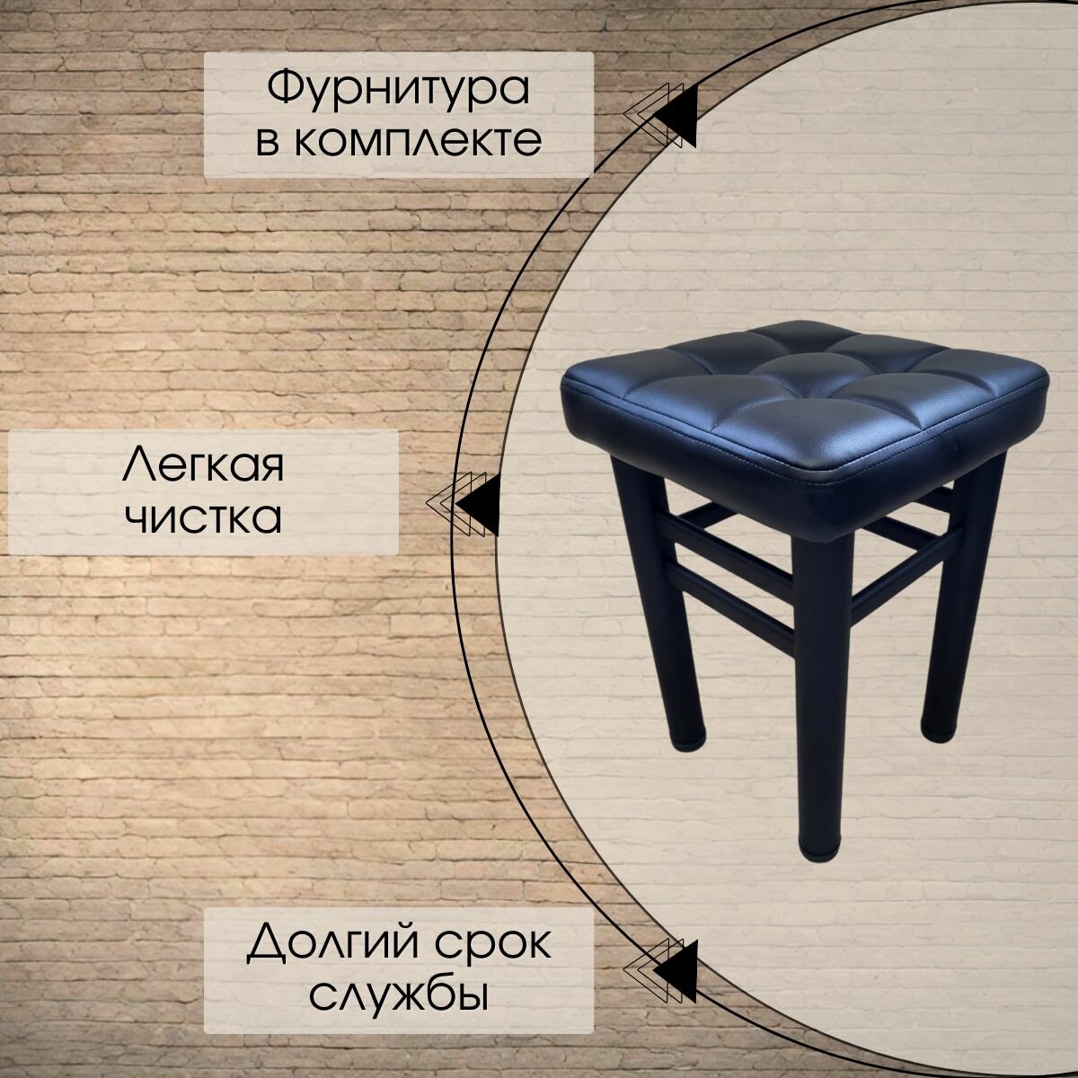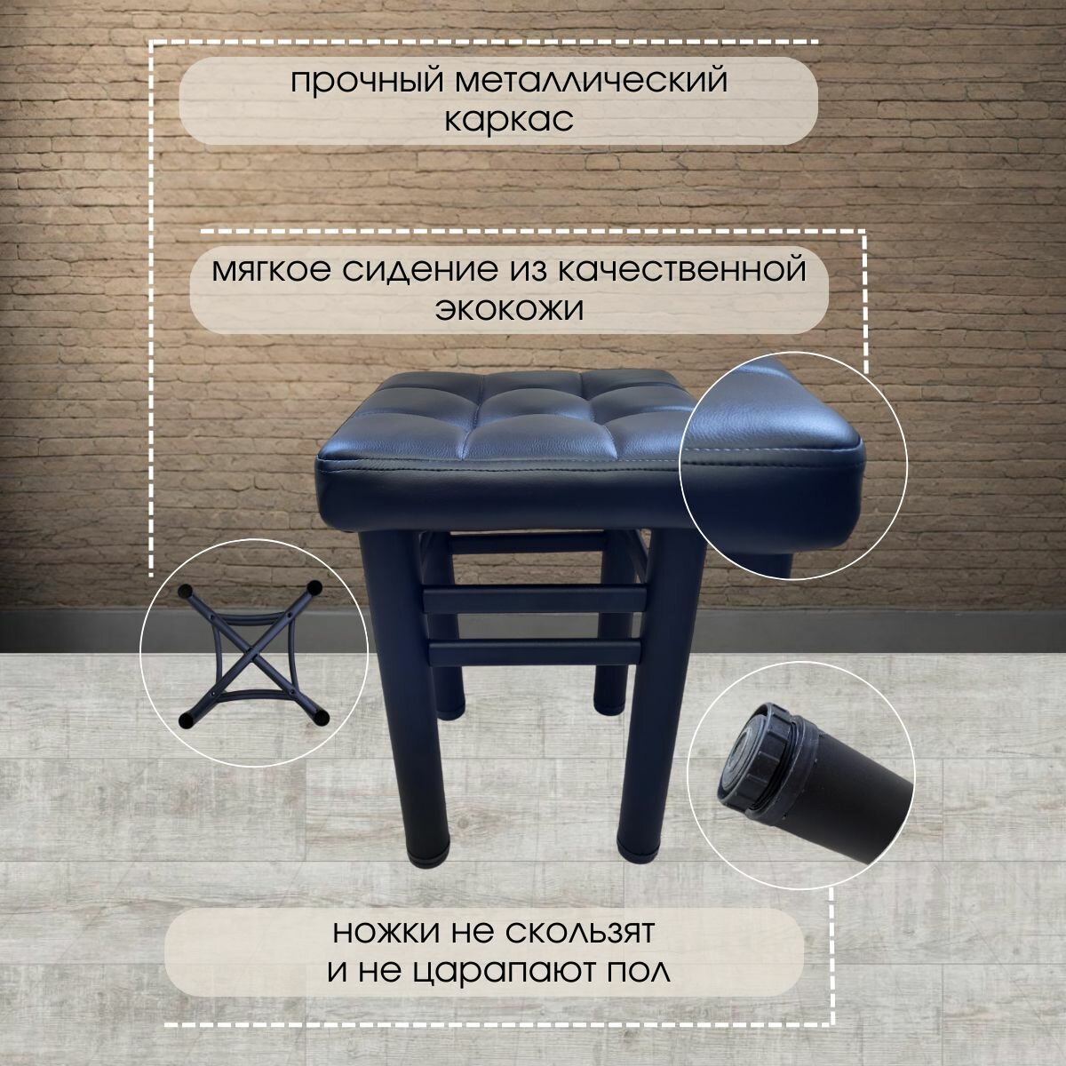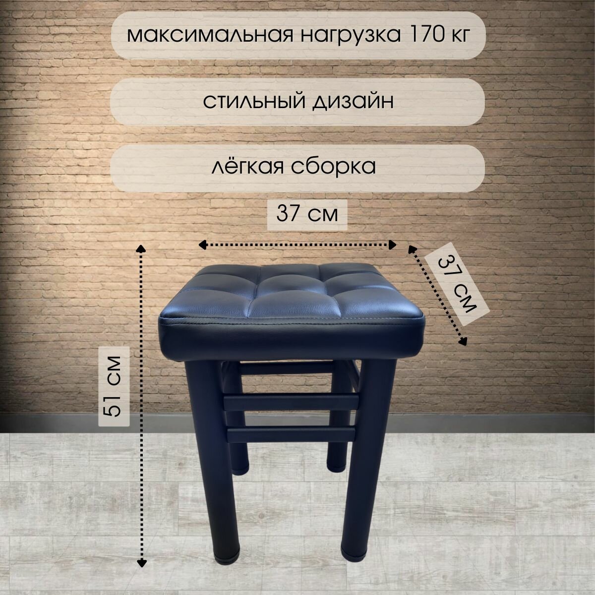Табурет для кухни усиленный ELITE LOFT. комплект 2шт. Экокожа черная а9 информация: