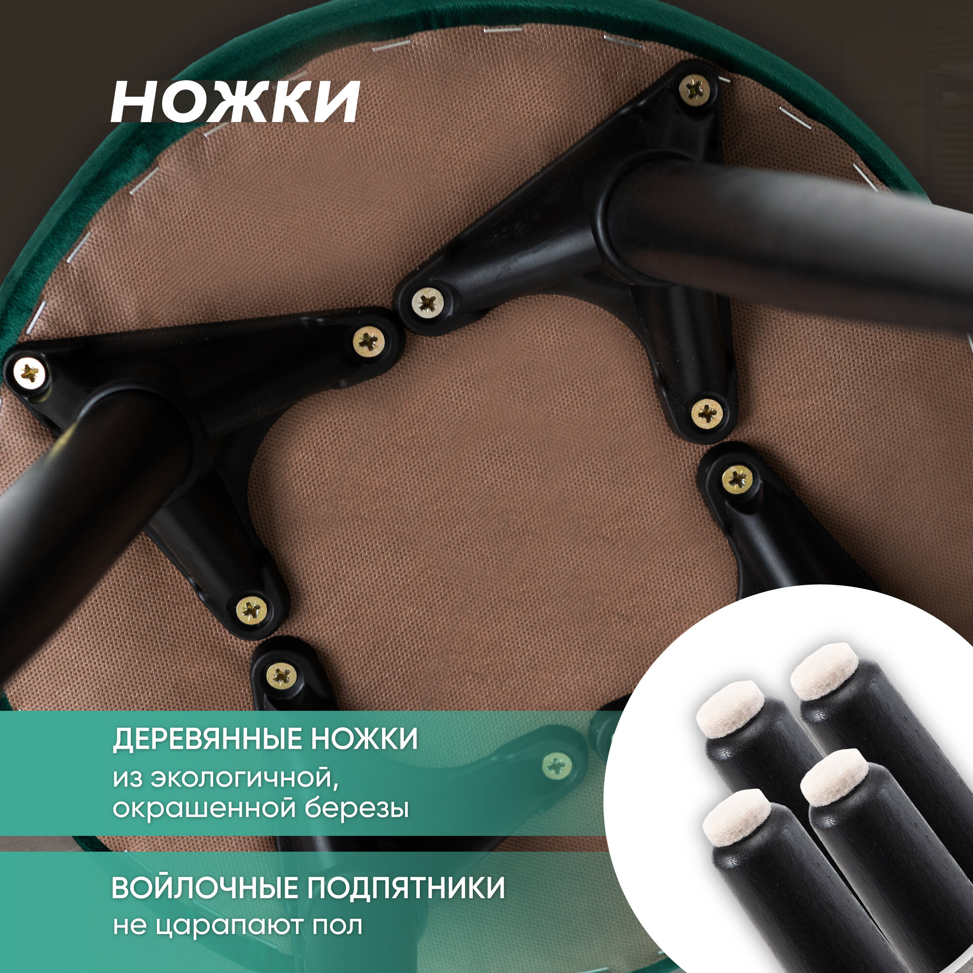 Отзывы на Табурет для кухни мягкий комплект 2 штуки лофт, для гостиной и дома с мягким сиденьем, зеленый вельвет, Ами Мебель