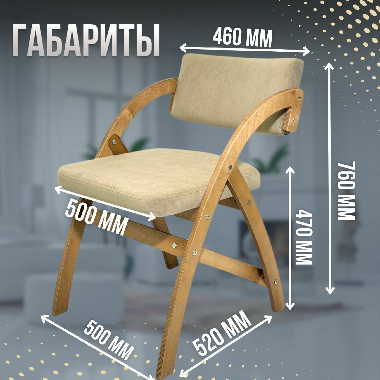 Стул-кресло "Аврора" из велюра, 50 х 52 х 76 см, бежевый/дуб информация: