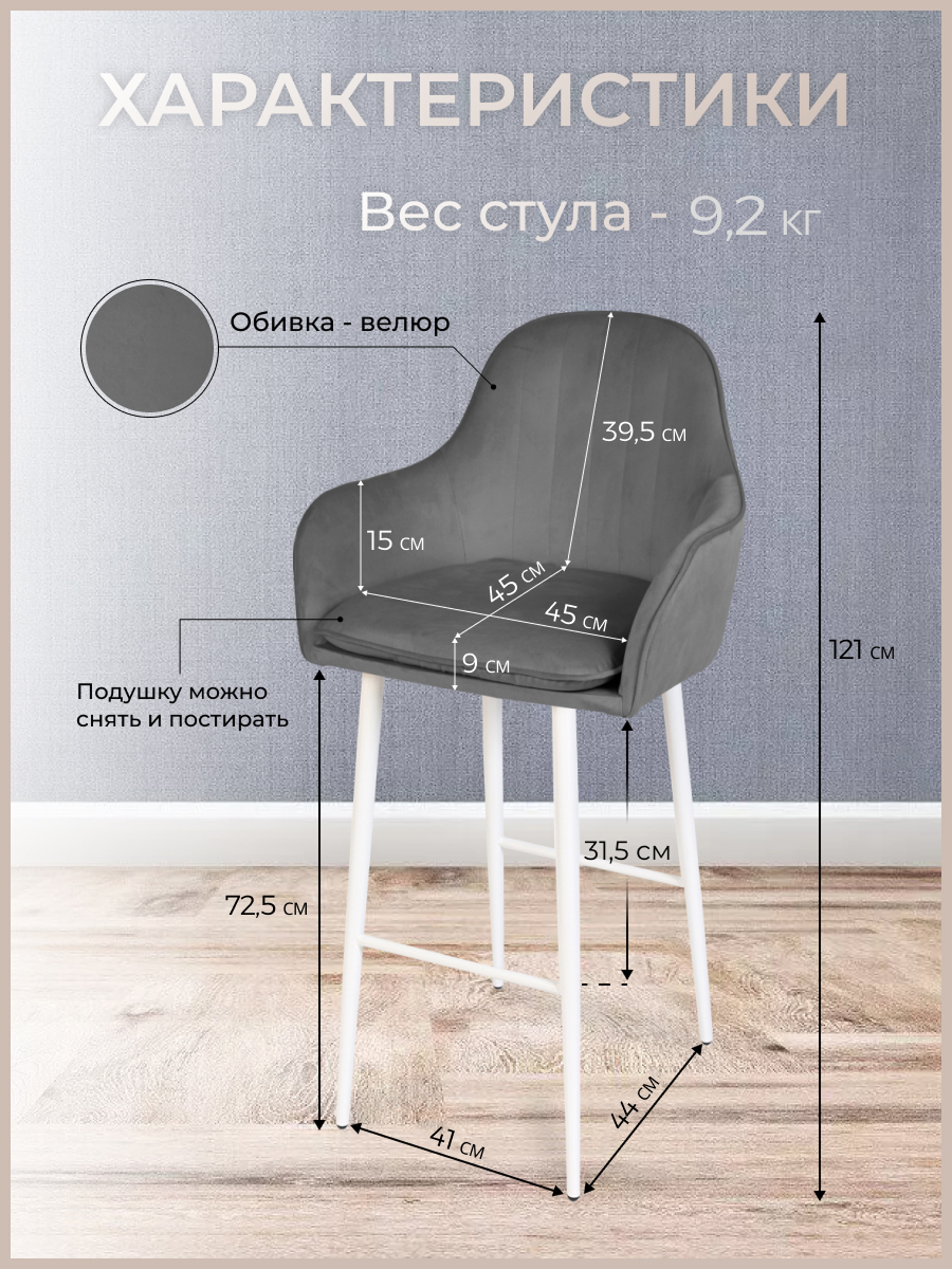 Барный стул для кухни, дома Санрайс, ноги белый металл, темно-серый информация: