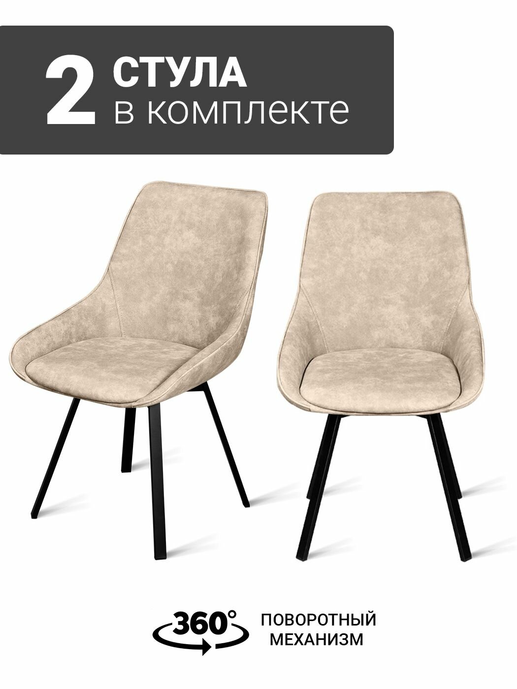 Стул B313-m LATTE VL10 BK (2 шт.) с поворотным механизмом велюровый, 50х60х86 см (бежевый/черные ножки) 18 459 ₽