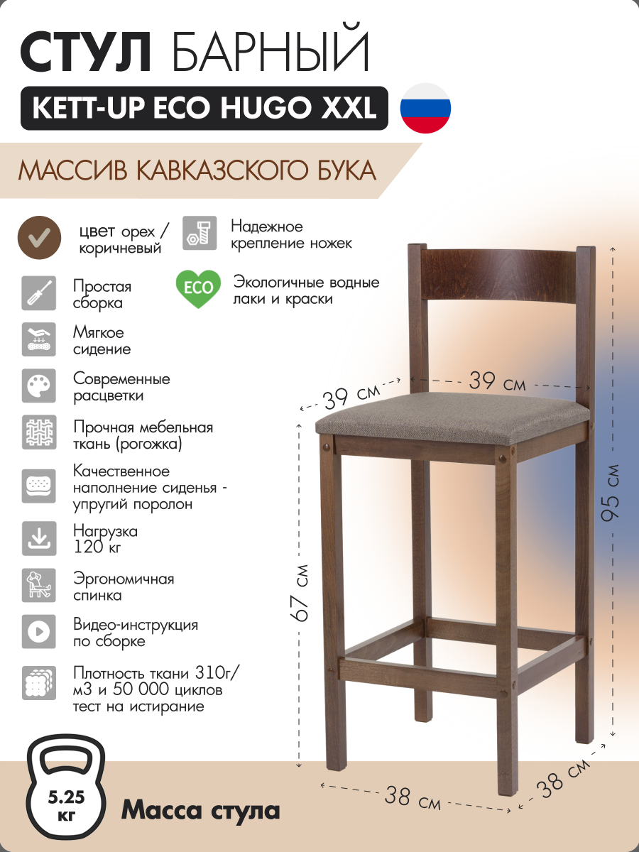 10 цен на Стул барный KETT-UP ECO HUGO XXL с мягким сиденьем орех / коричневый