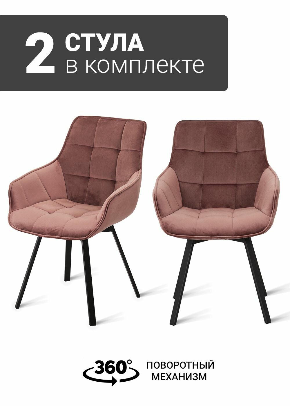 10 цен на Стул B815-m ROSA VL 34 BK (2 шт.) с поворотным механизмом для кухни черные ножки, велюр розовый, 56х61х85 см